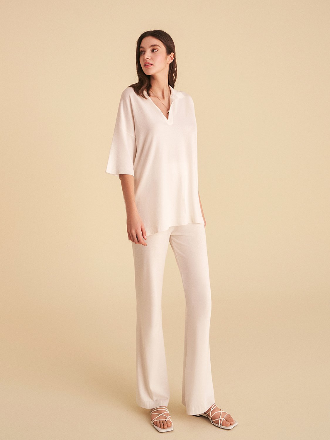 The Lapel Collar Knit Top is designed to elevate your casual wardrobe. The lapel collar adds a touch of sophistication, while the flowy silhouette ensures you stay comfortable throughout the day. Whether you're heading out for brunch with friends or enjoying a leisurely stroll in the park, this top will keep you looking effortlessly chic.