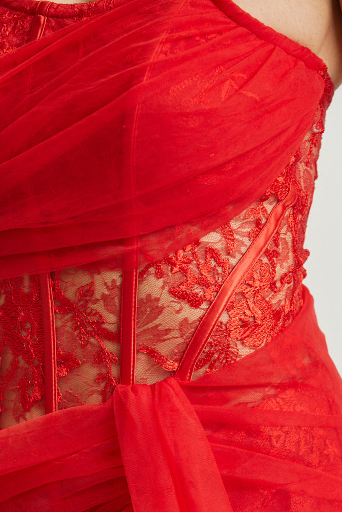 Adding to its allure, the Leilani Dress features a tulle sash and draping long skirt overlay. This unique design element creates a beautiful flow and movement, allowing you to twirl with grace. The tulle overlay adds a layer of sophistication, making this dress suitable for both formal and semi-formal events.