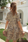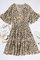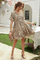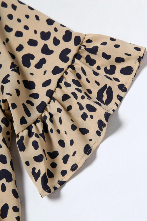 •Casual swing dress, v neck, lantern short sleeves, leopard print, flare hem, tiered ruffle dress, 3 buttons