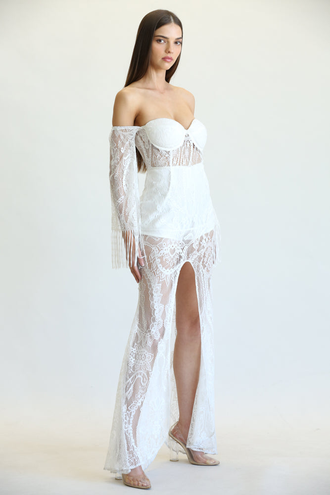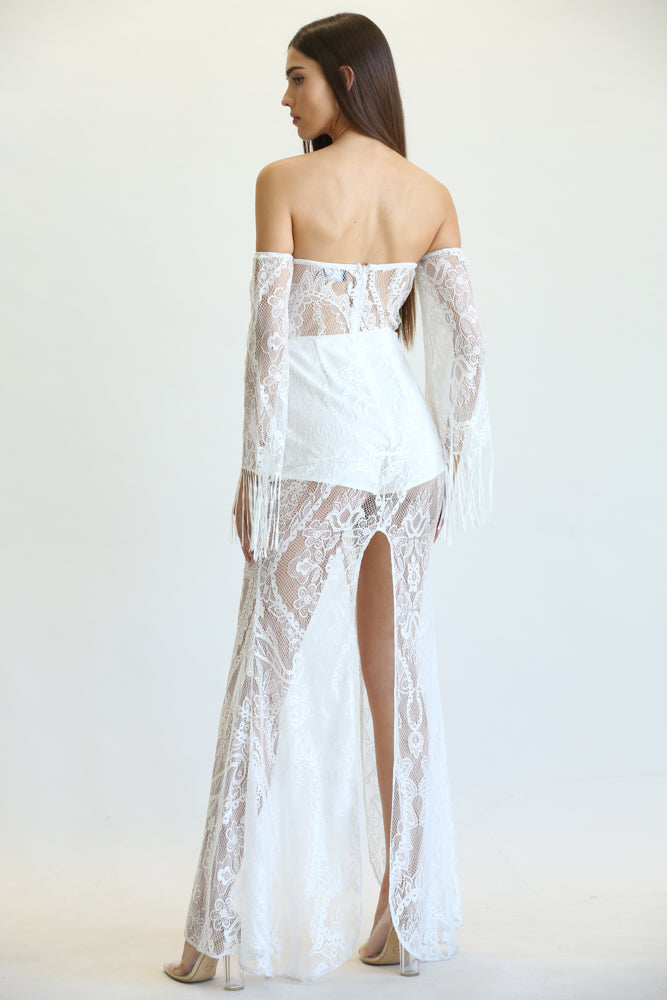 In summary, the Lilah Dress is a stunning choice for anyone looking to elevate their wardrobe with a chic and stylish piece. Its boho pattern lace fabric, off-shoulder design, and unique slit details make it a standout option for any occasion. Don't miss out on the chance to own this beautiful dress that combines comfort and style effortlessly.