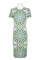 London Times Crew Neck Short Sleeve Bodycon Zipper Back Multi Print Jersey Dress; Fabric: Jersey (95% Polyester 5% Spandex) Lining (100% Polyester); Fabric Content: LINED