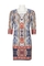 London Times String V-Neck 3/4 Sleeve Multi Print Dress (Petite); Fabric: Jersey (95% Polyester 5% Spandex) Lining (100% Polyester); Fabric Content: LINED