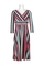 London Times V-Neck 3/4 Sleeve Ruched Waist Zipper Back Multi Print Jersey Dress; Fabric: Jersey (95% Polyester, 5% Spandex) Lined (100% Polyeter); Fabric Content: LINED