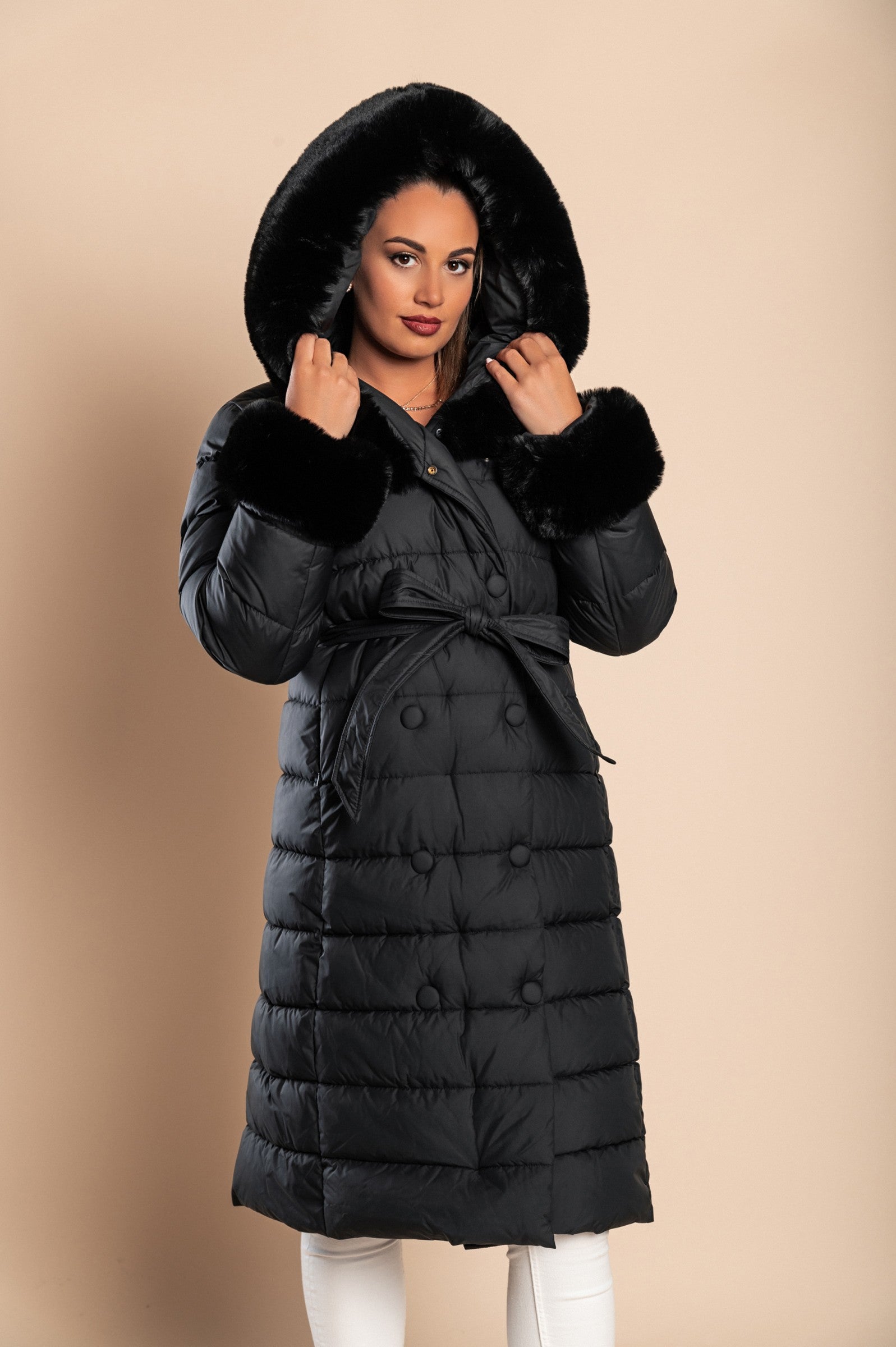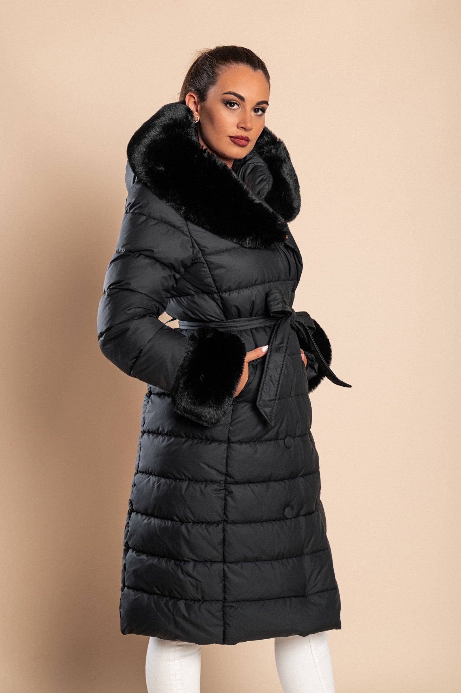 Introducing our Long Padded Winter Jacket with Faux Fur in classic black, designed to keep you warm and stylish during the cold months. This jacket is crafted from high-quality materials, ensuring perfect wearing comfort while providing excellent insulation against the winter chill.