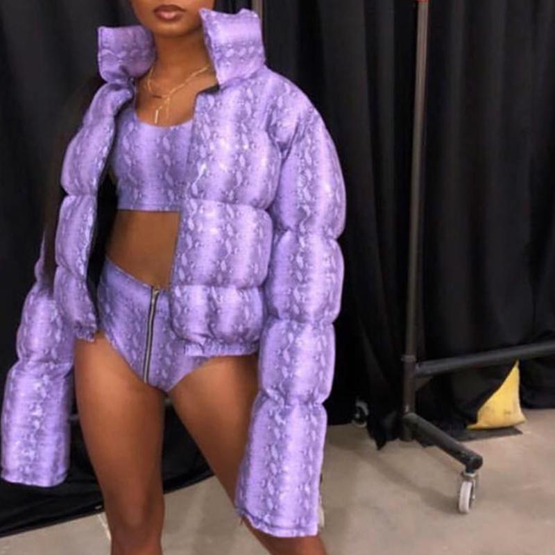 In summary, the Long Sleeve Purple Animal Print Jacket Coat for Women is a stylish and functional piece that every woman should have in her wardrobe. With its trendy design, quality materials, and versatile styling options, it is sure to become a favorite for winter wear.