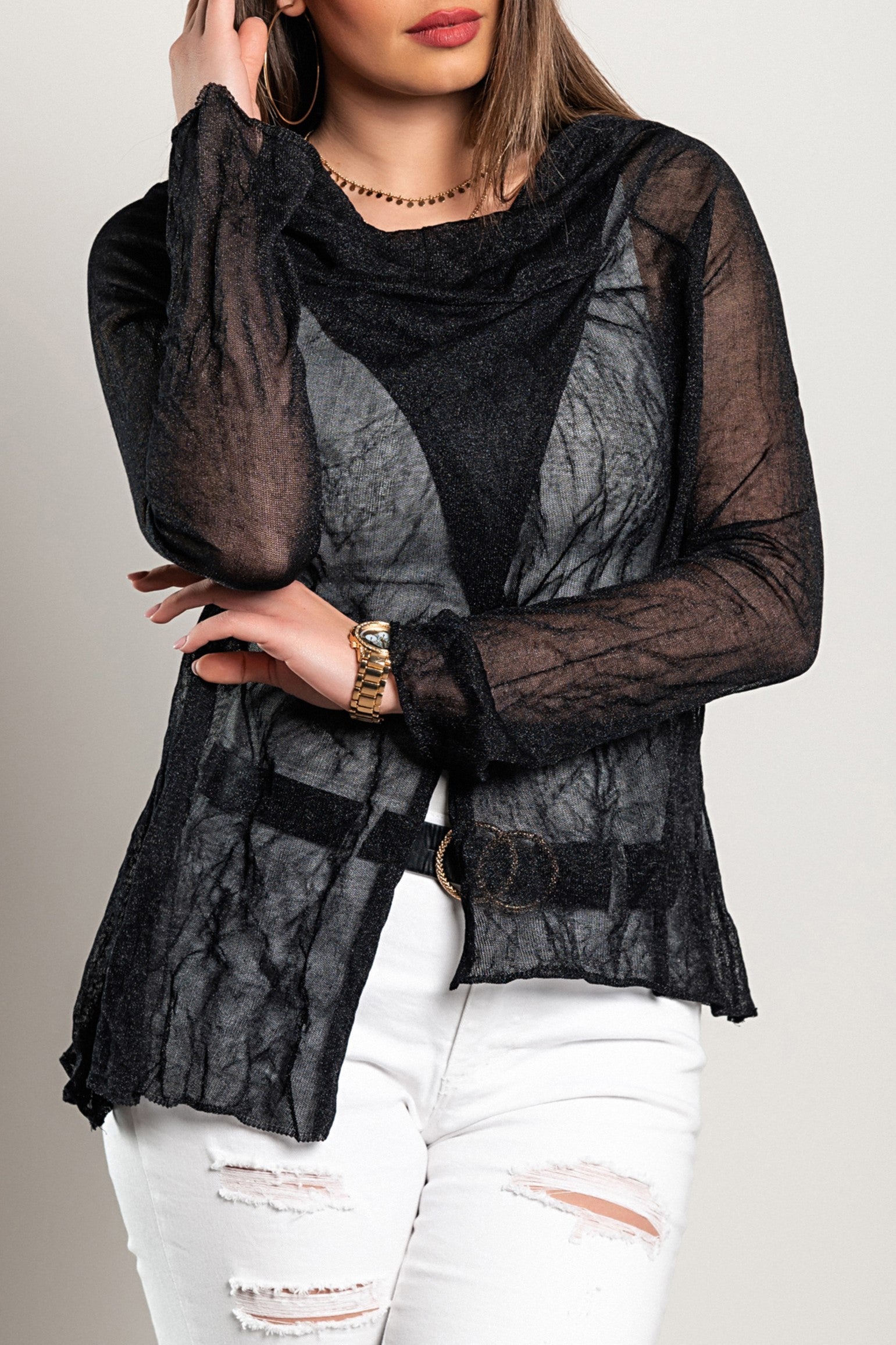 This loose-fit top is not just about looks; it's designed for comfort. The lightweight fabric allows for breathability, making it ideal for warmer days. Additionally, the half-transparent design adds a unique flair, allowing you to layer it with your favorite camisole or bralette for a trendy look.
