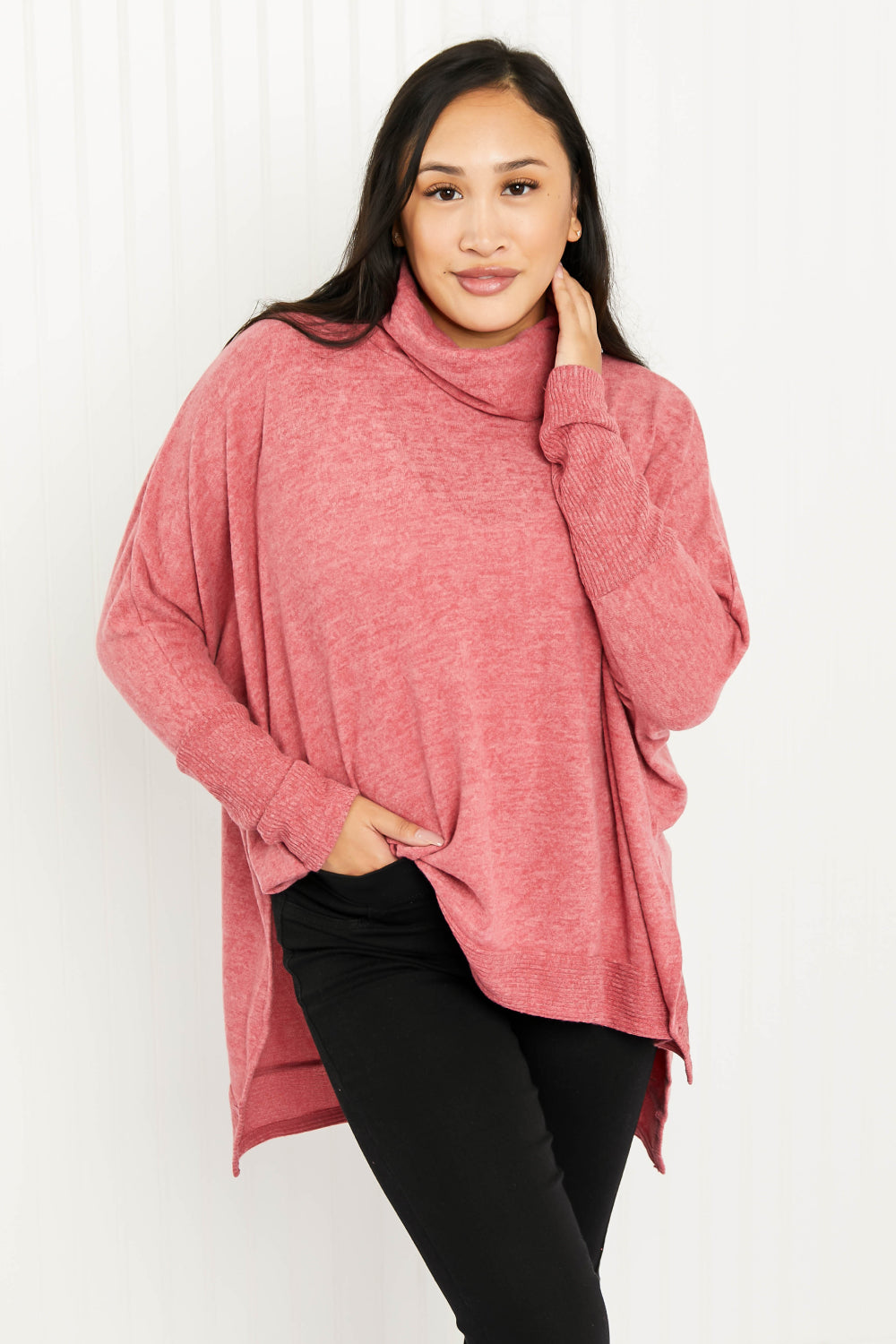 The Love and Cuddles Cowl Neck Poncho Sweater is incredibly versatile. Pair it with your favorite leggings for a chic and cozy look, or layer it over a fitted turtleneck for added warmth. You can also accessorize with a statement necklace or a scarf to elevate your outfit. This sweater is perfect for transitioning between seasons, making it a staple piece in your wardrobe.
