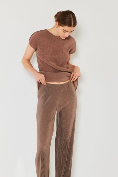 The rib pleated cap sleeve top is designed with a keen eye for fashion. The cap sleeves offer a flattering fit that accentuates the shoulders, while the ribbed fabric creates a visually interesting texture. This combination ensures that you look chic and put-together, no matter how you choose to style it. Pair it with a flowing skirt for a dressy look or with your favorite jeans for a casual day out.