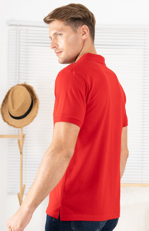 Men Polo Collar T-shirt (ColorRed) (Size XL)