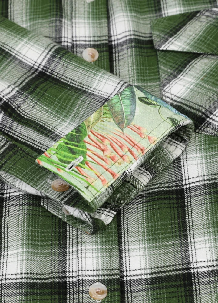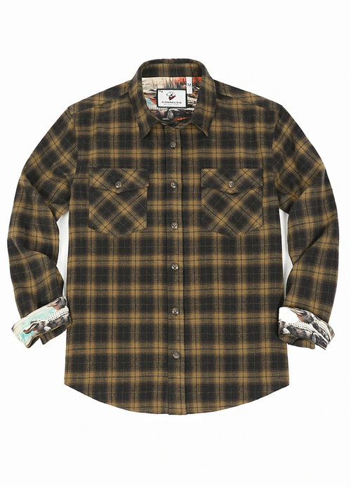 This flannel shirt stands out with its unique hidden wildlife motifs that adorn the interior back and cuffs. These charming designs add a touch of wild charm to your style, allowing you to express your love for nature even when you're not in the wilderness. Roll up your sleeves to reveal these delightful details and showcase your adventurous spirit.