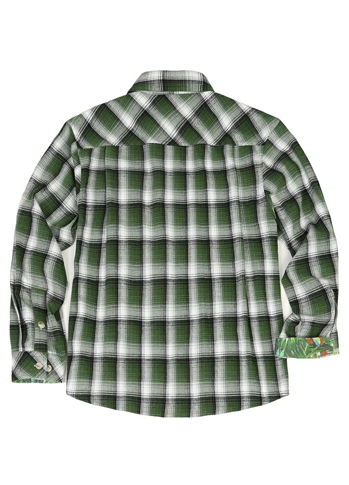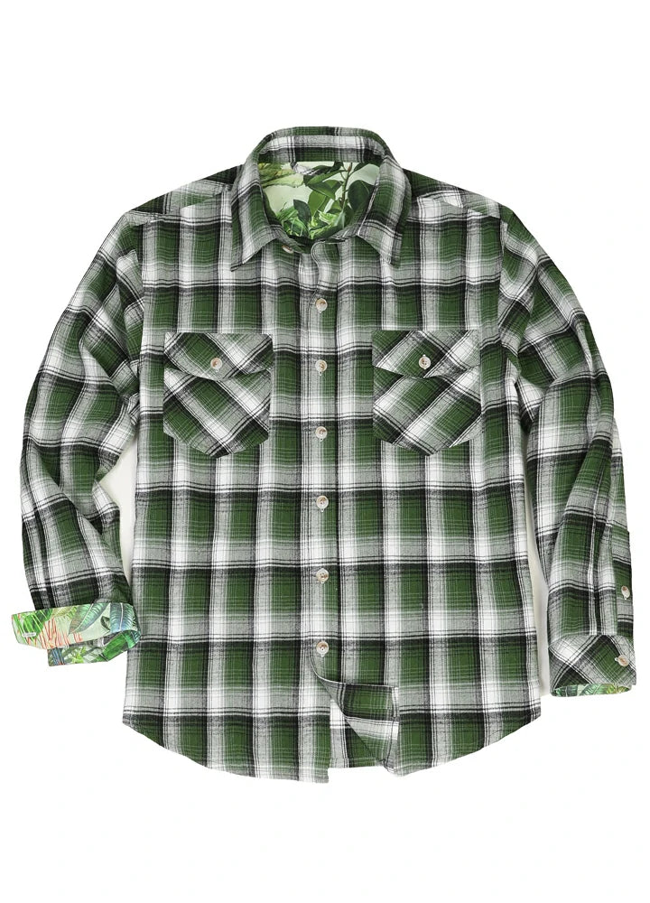 Designed with practicality in mind, the Men's Wildlife Adventure Flannel Plaid Shirt features two chest pockets with flap closures. These pockets are perfect for storing small essentials like your phone, wallet, or keys, keeping your hands free for other activities. The button-up cuffs allow you to adjust the fit to your liking, ensuring that you stay comfortable no matter the occasion.