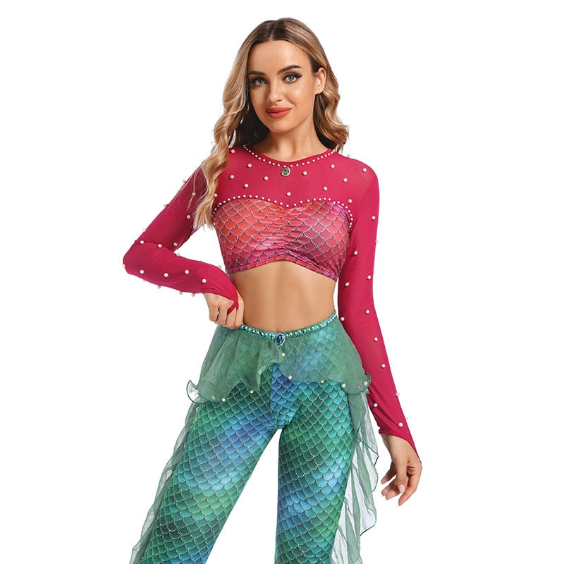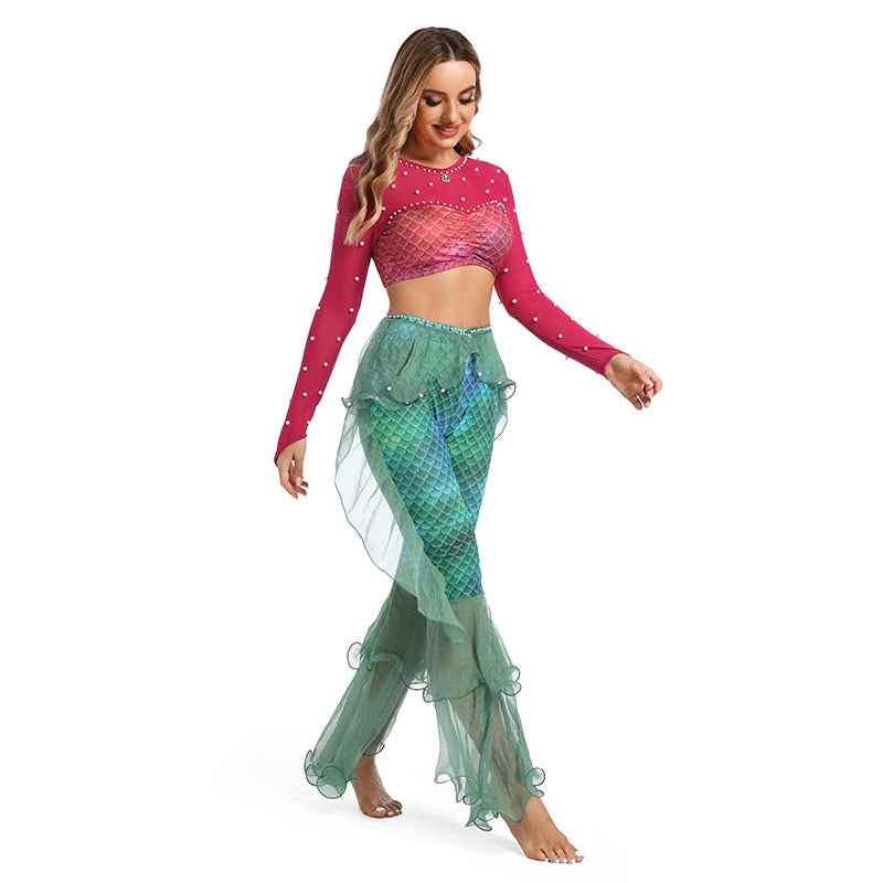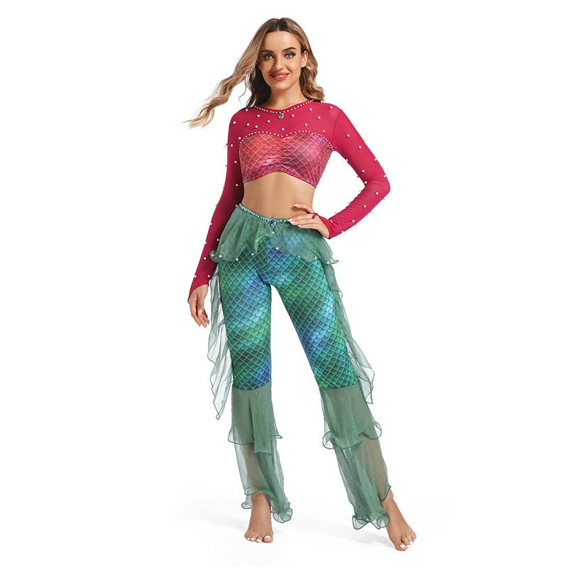Transform into a mesmerizing sea creature with our Mermaid Costume for Women, designed specifically for Halloween and cosplay events. This stunning outfit features long sleeves and a sexy silhouette that will make you the center of attention at any party. The costume is crafted from a slightly elastic fabric, ensuring a comfortable fit while allowing for ease of movement.