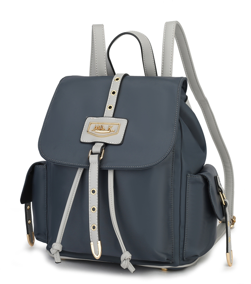 • Feature: The ultimate on-the-go bag, our Paula Backpack is crafted of lightweight nylon and polished smooth vegan leather. The Paula Backpack has a spacious open compartment with multifunction pockets for keeping your phone, charges, and other essentials organized. It has an interior drawstring closure and a magnetic snap, a convenient top handle, and comfortable adjustable straps. Design with luxurious gold-tone embellishments, this versatile backpack has two side pockets with magnetic snap closure and one front zip pocket. The Paula Backpack has a flat base for stability and protective metal feet. The Paula Backpack has our signature Mia K. Collection emblem on the front for decoration.