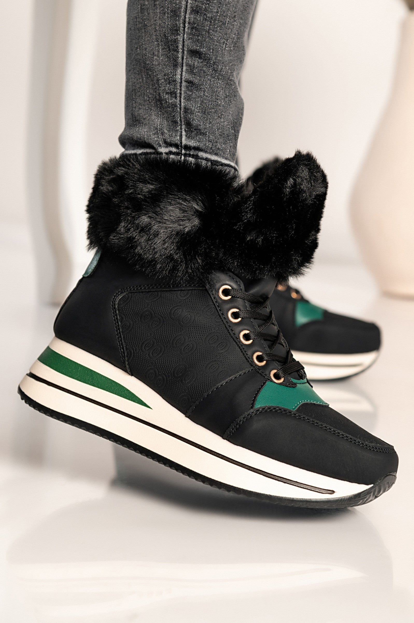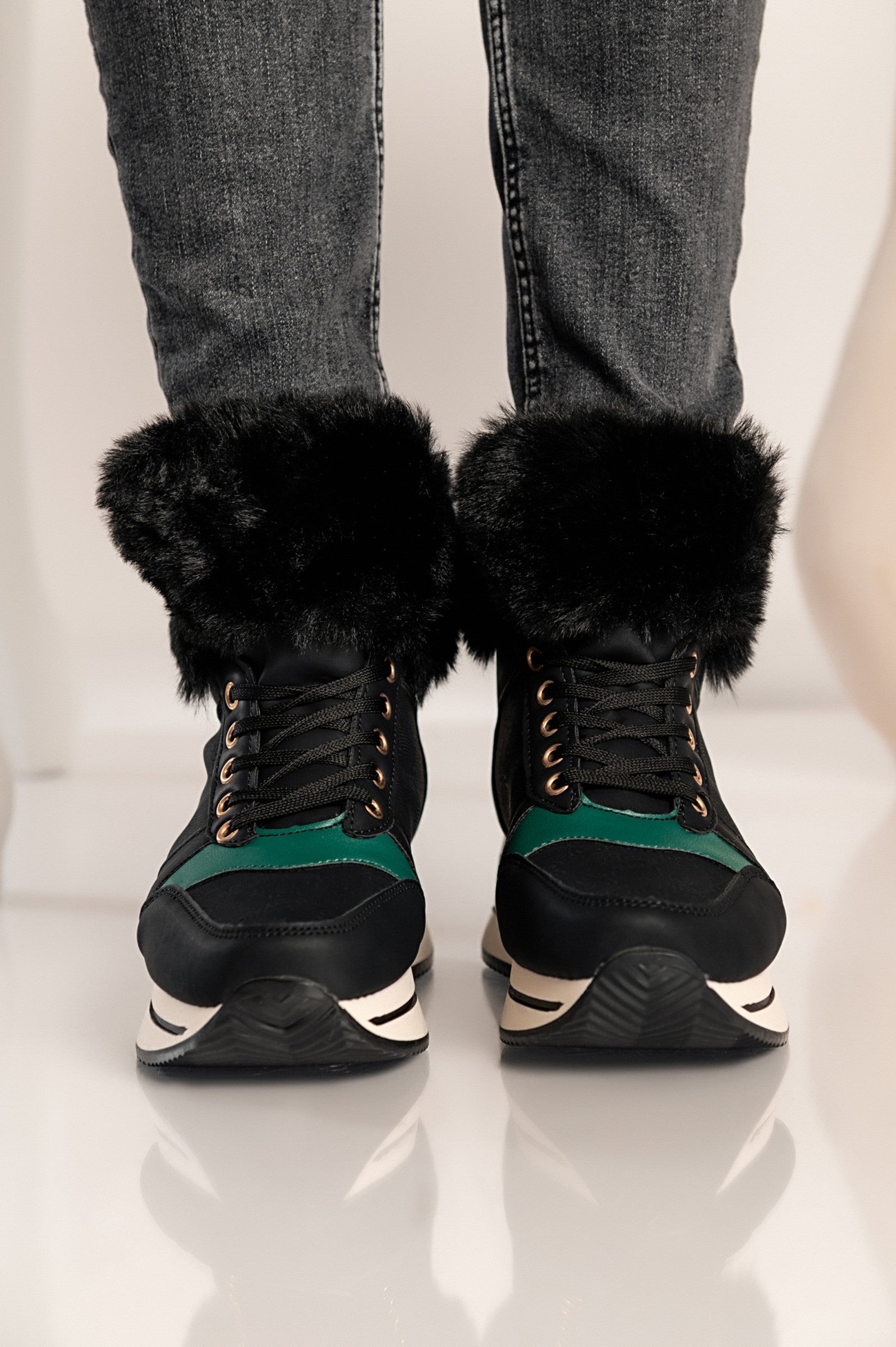 Okrogla konica in zavezovanje z vezalkami dodajata moderen pridih tem supergam. Te značilnosti ne le da izboljšujejo estetiko, ampak tudi zagotavljajo boljše prileganje in udobje. Umetno krzno okoli gležnja pa dodaja dodatno plast udobja in topline, kar je idealno za hladnejše dni.