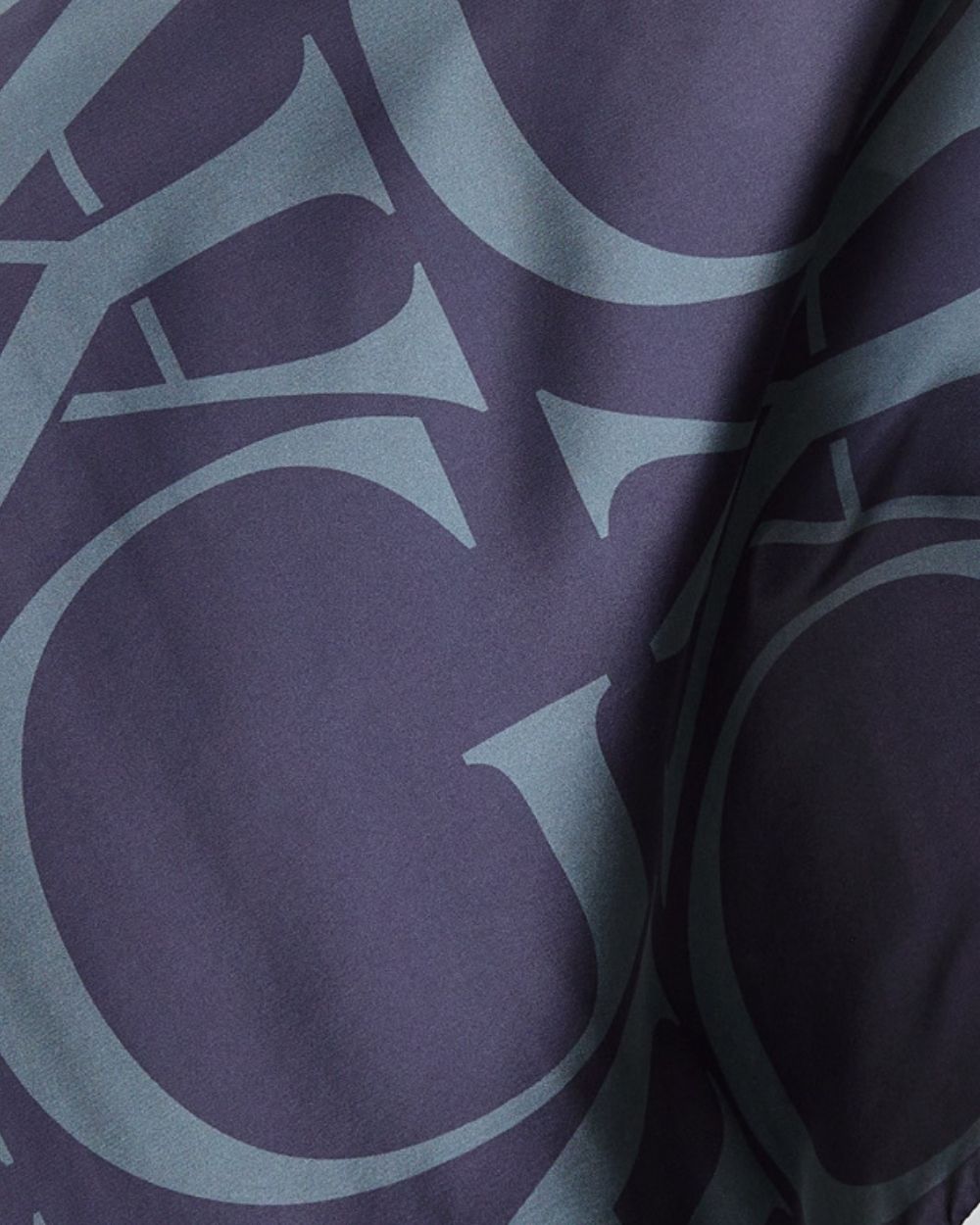 The printed Yagya signature monogram adds a unique touch to the scarf, making it a fashionable statement piece. This distinctive design is perfect for those who appreciate high fashion and want to showcase their style. The contrast of the black background with the monogram print creates a striking visual that can elevate any outfit.