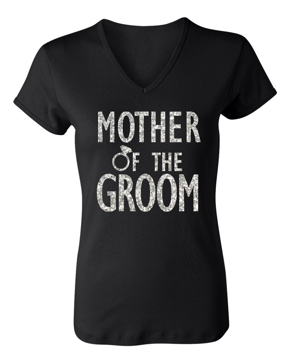 Introducing the stunning Mother of the Groom Glitter Shirt, a must-have for any mother celebrating her son's special day. This elegant black V-neck shirt features a sparkling glitter print that proudly displays the phrase 'Mother of the GROOM'. Perfect for wedding festivities, this shirt combines comfort and style, ensuring you look fabulous while supporting your son on his big day.
