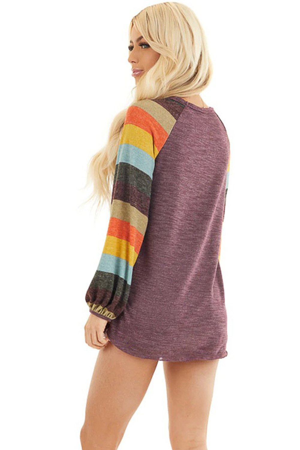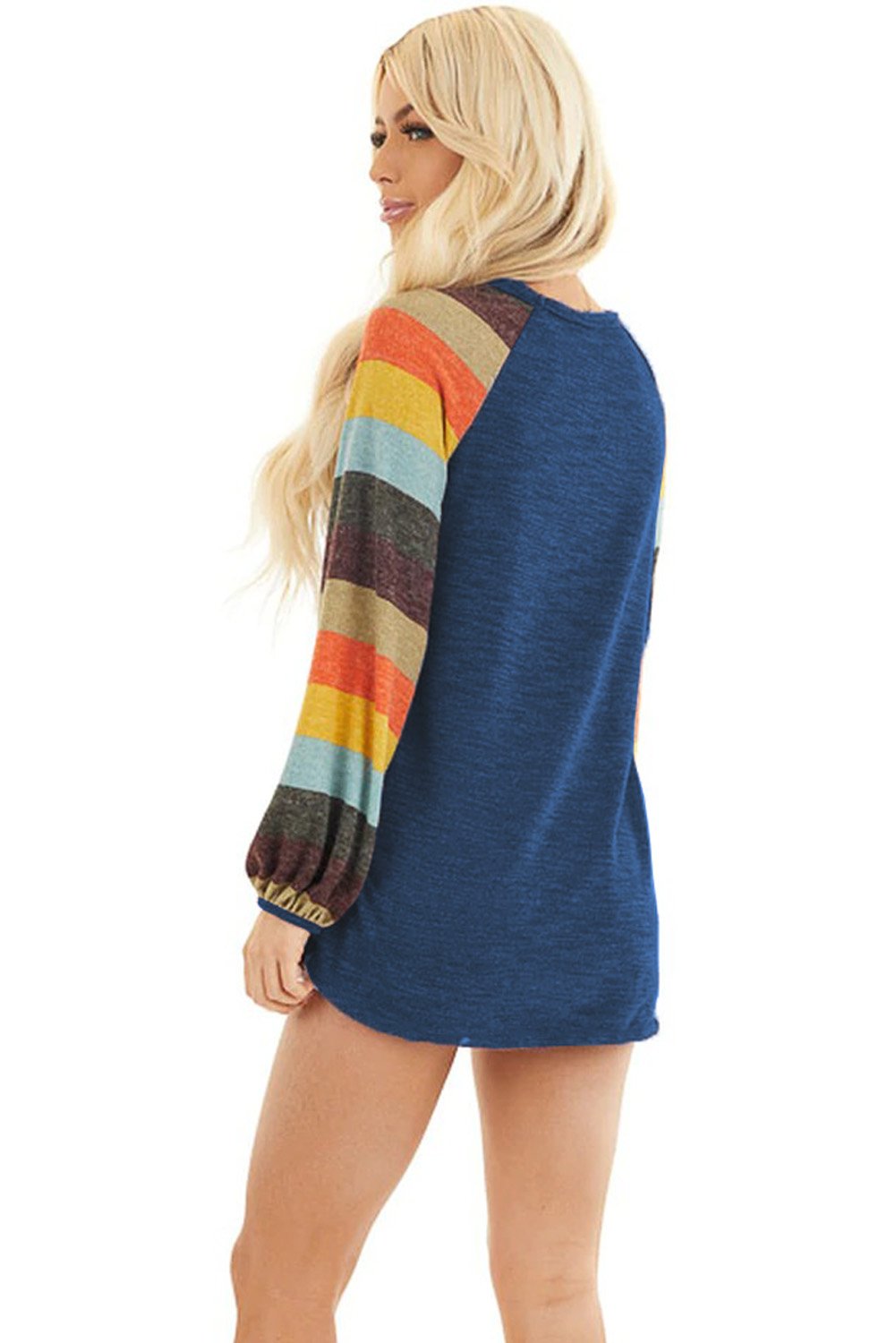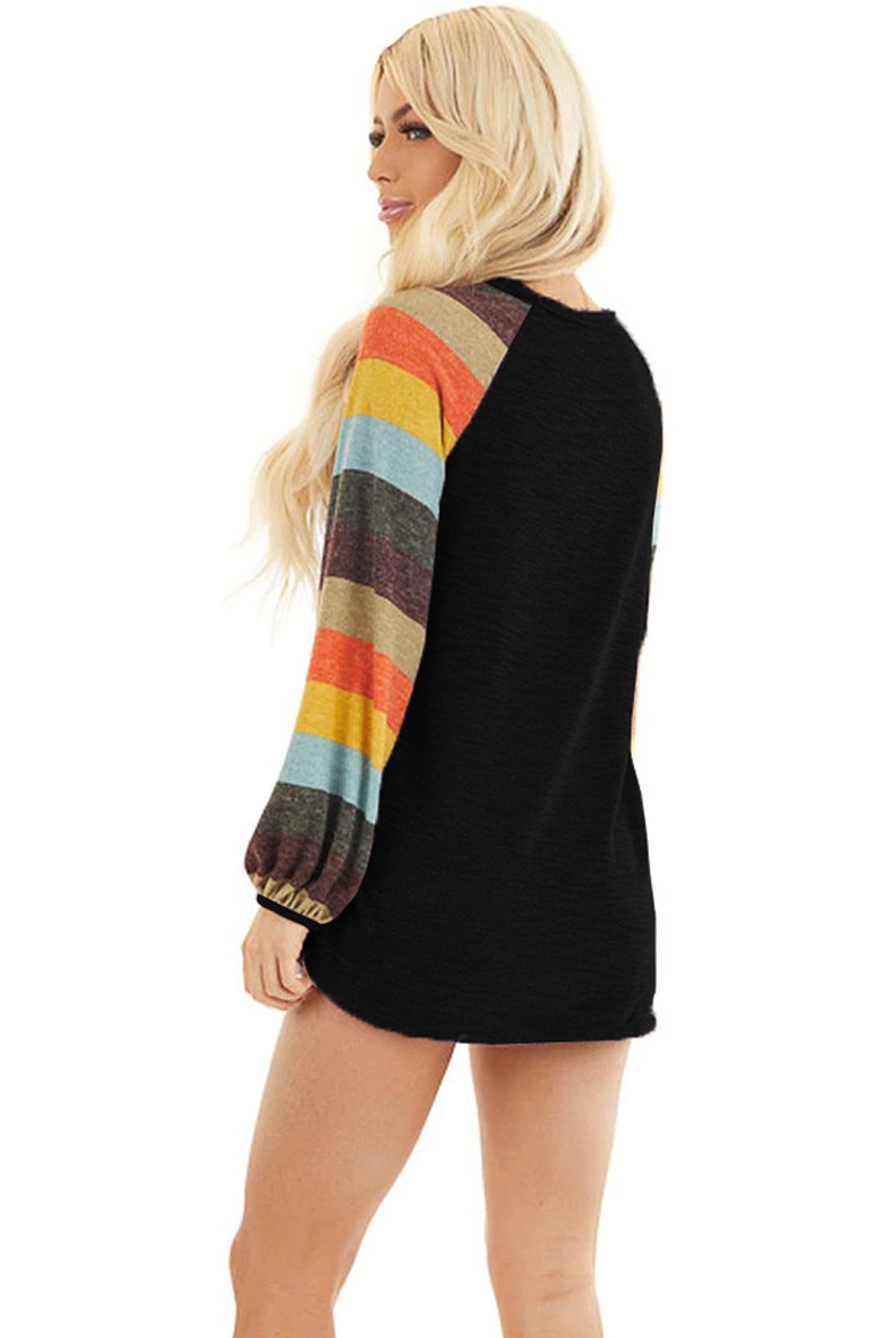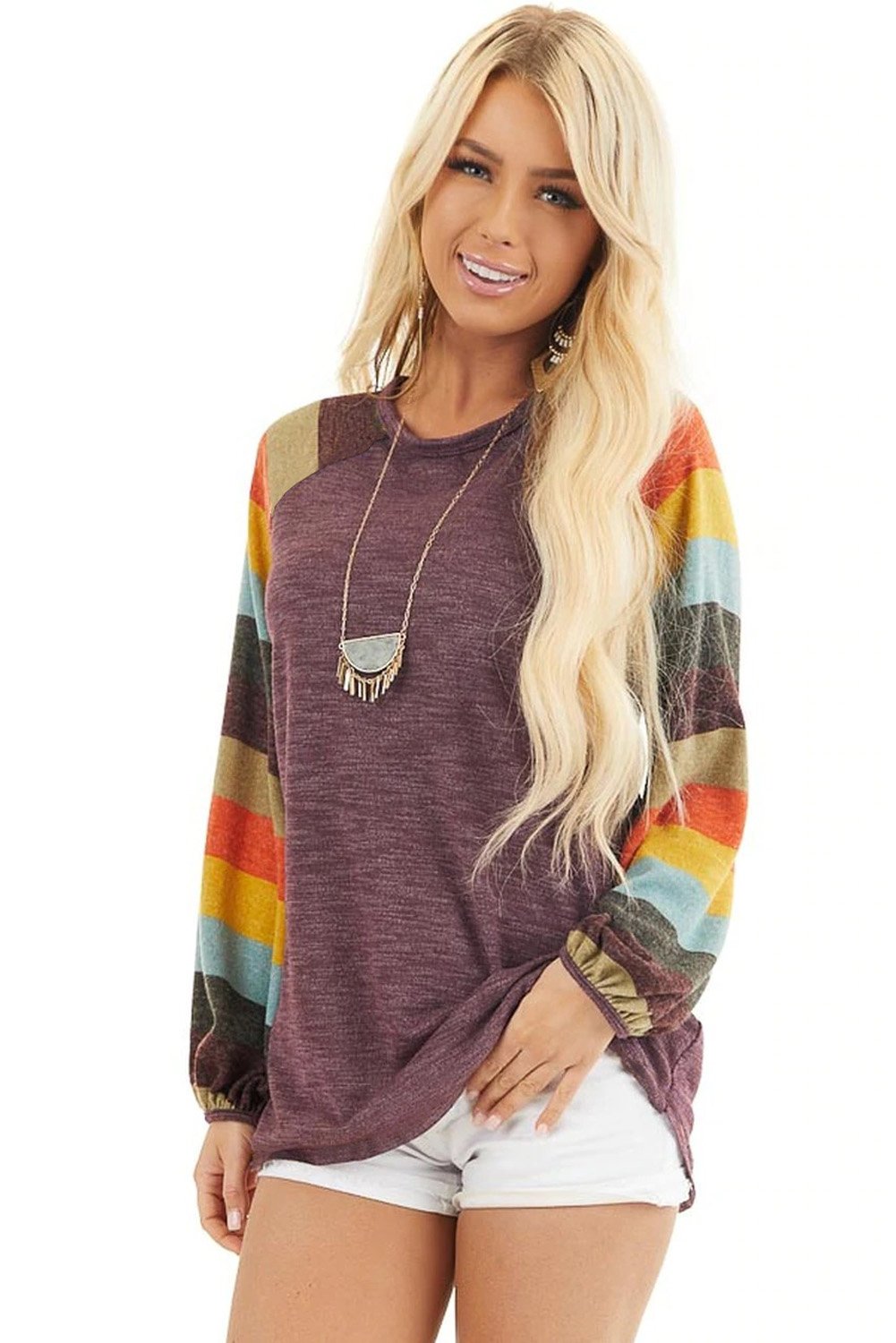 The eye-catching multicolor stripes are designed to make you stand out in a crowd. Whether you're heading to brunch with friends or a night out on the town, this top will ensure you look chic and fashionable. The balloon sleeves are a trendy element that adds a touch of sophistication to your look, making it a favorite among modern ladies.