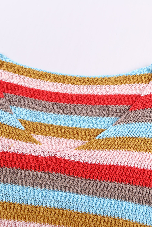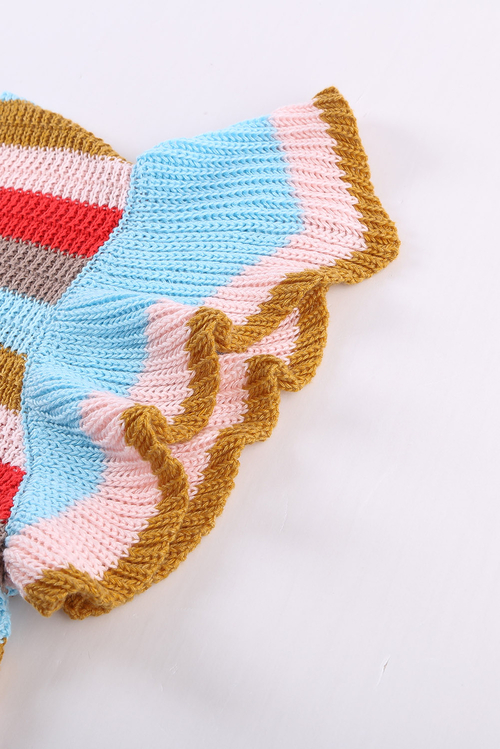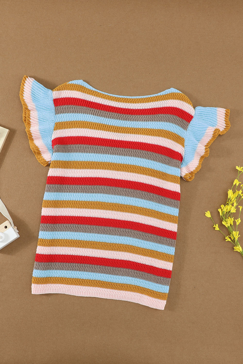 •Our Striped Flutter Knit Top is perfectly femme regardless of the temp with retro themed stripes
