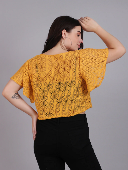 Add a pop of color to your wardrobe with the Mustard Lace Regular Shrug. This striking shrug combines the classic elegance of lace with a vibrant mustard hue, offering a unique and eye-catching accent to your outfits. The delicate lace fabric is both lightweight and breathable, ensuring comfort while enhancing your look with a touch of sophistication.