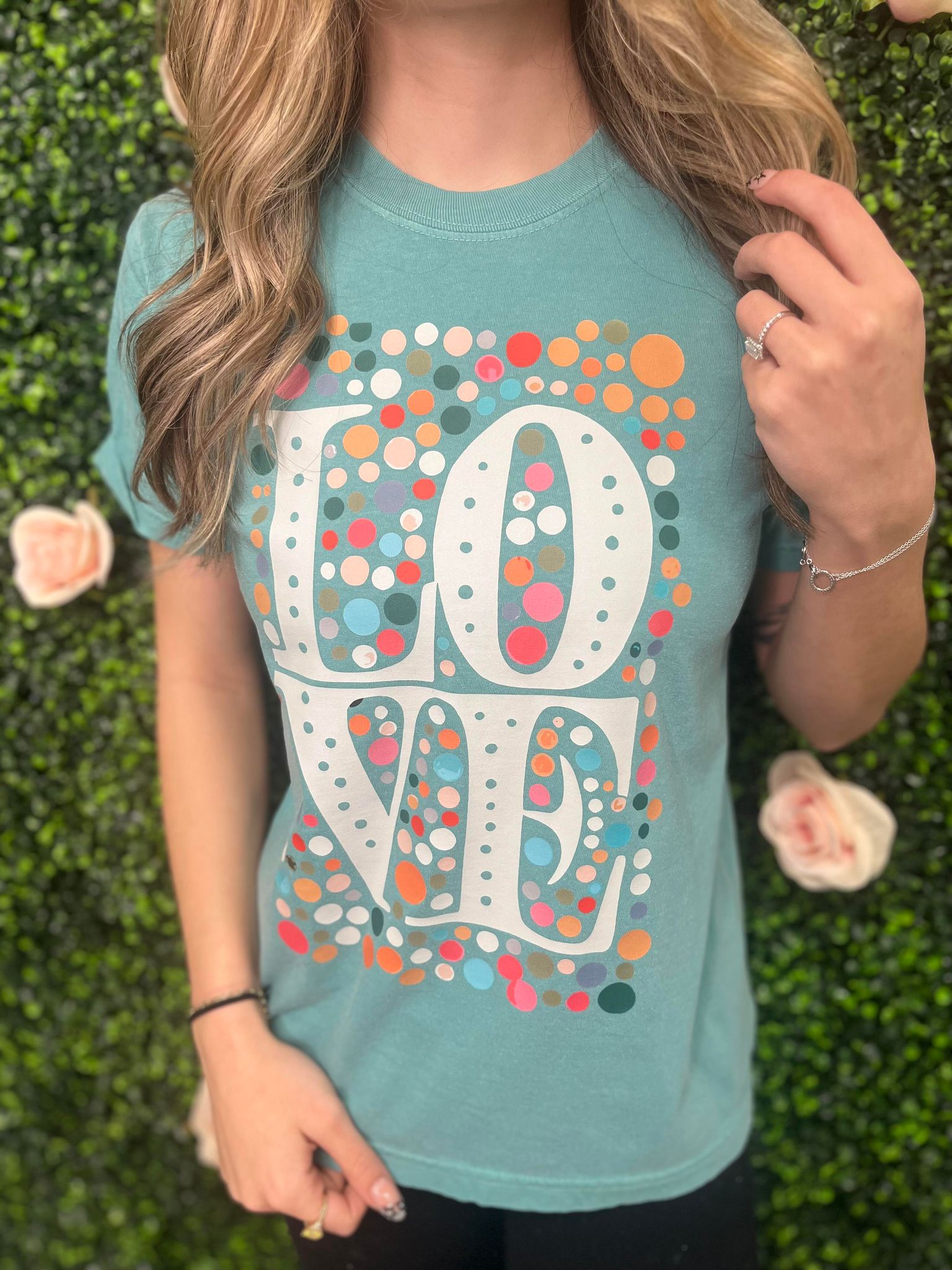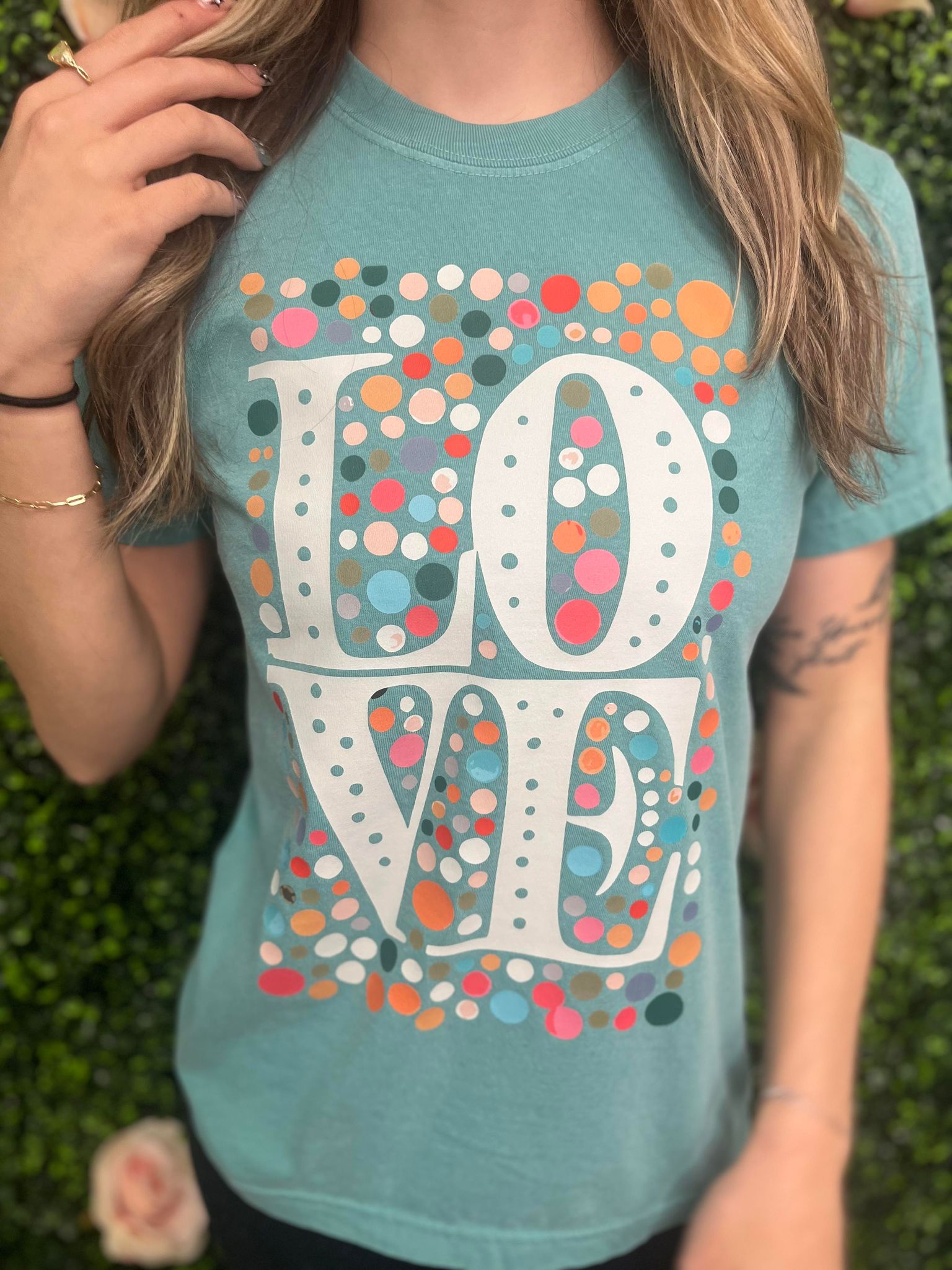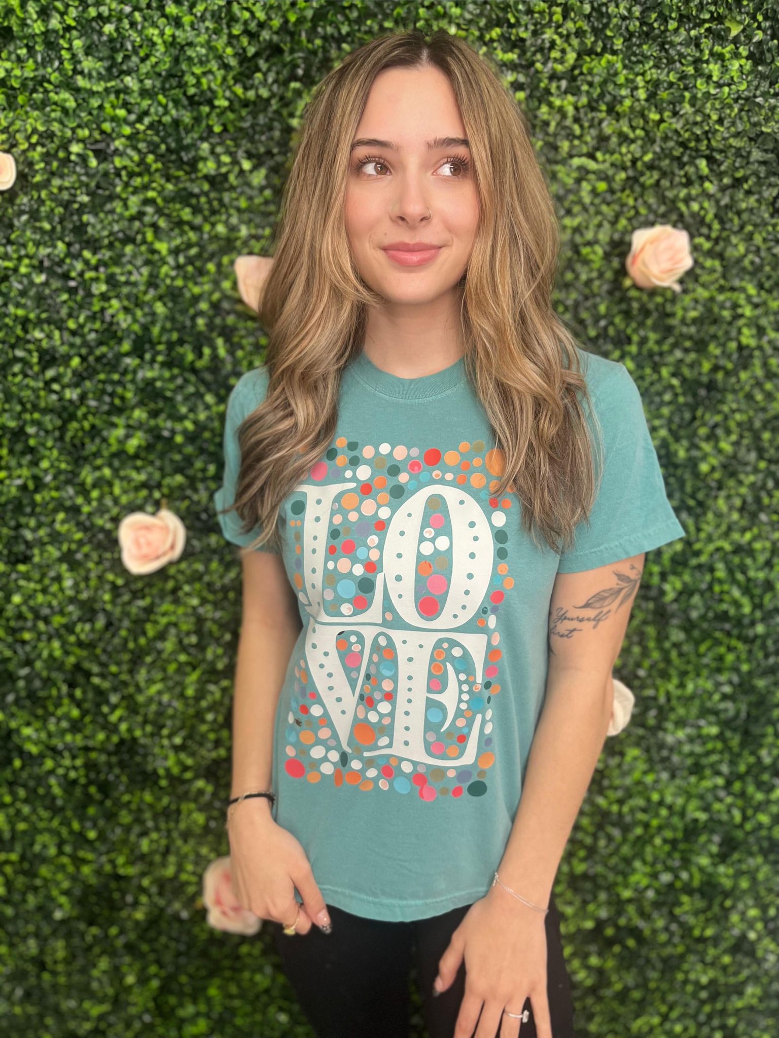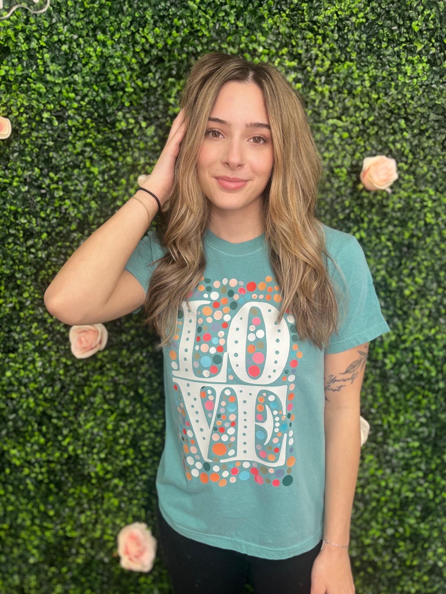 The graphic on the Multi Colored Love Tee is professionally DTF printed, ensuring vibrant colors and sharp details that won't fade over time. This printing method provides a high-quality finish that enhances the overall look of the tee, making it a standout piece in your collection.