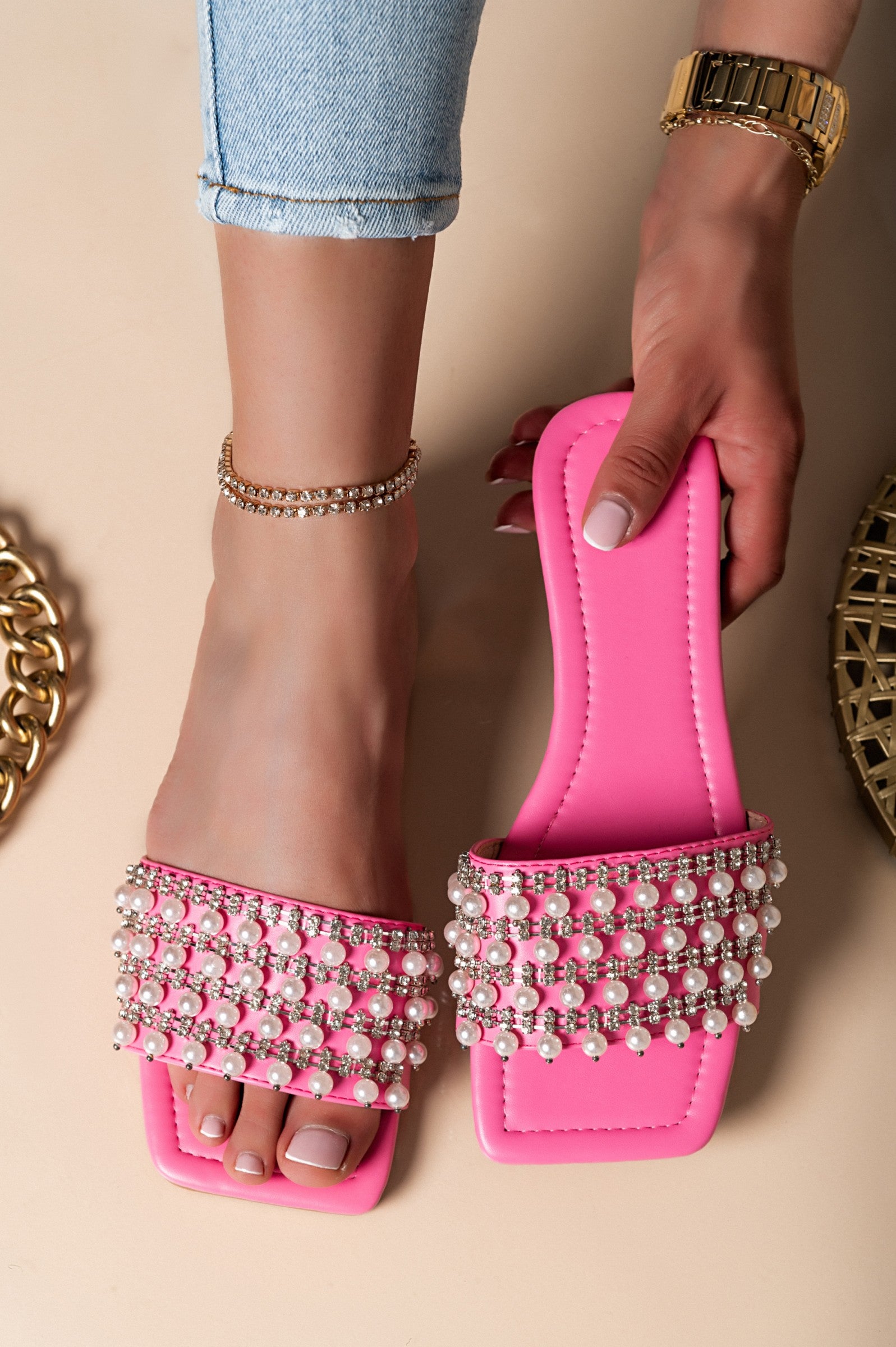 Natikači z okrasnimi perlicami so izjemno vsestranski in jih lahko kombinirate z različnimi oblačili. Odlično se podajo k poletnim oblekam, kratkim hlačam ali celo k udobnim pajkicam. Njihova svetlo roza barva je enostavna za usklajevanje z drugimi barvami, kar pomeni, da jih lahko nosite v različnih kombinacijah.