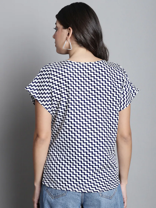 Navy Blue Chevron Print Kaftan Top(SizeXL)(ColorNavy Blue)