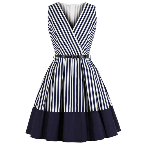 Model Number: Women Elegent Vintage Stripes dress 20190904