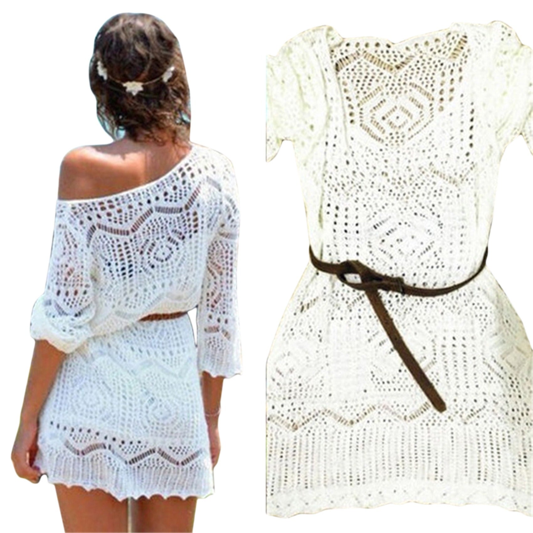 Don't miss out on this fashionable cover-up that combines style, comfort, and versatility. Add the New Sexy Hook Flower Hollowed Out Cover Up Beach Knit Dress Half Skirt to your summer wardrobe today and be ready to turn heads wherever you go!