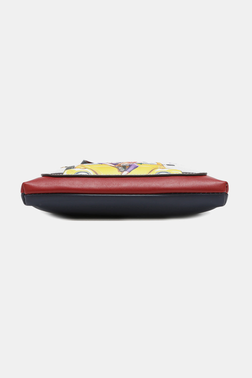Nicole Lee USA Nikky Crossbody Bag in smooth eco-leather with gold-toned logo, showcasing its slimline design and front zipper pocket.