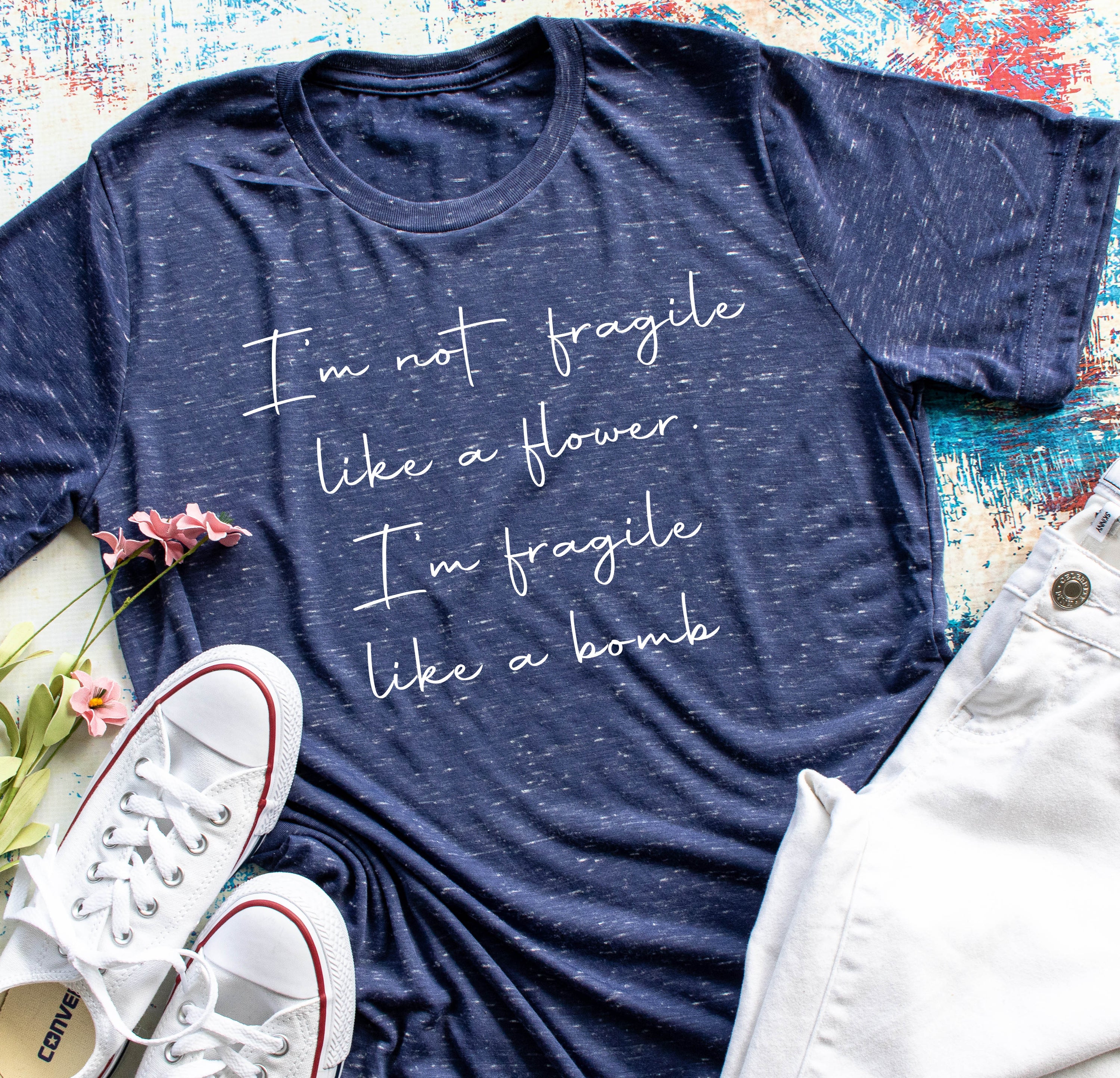 Choosing the Not Fragile Like a Flower, I'm Fragile Like a Bomb Adult Tee means opting for a product that combines humor, style, and comfort. It's not just a piece of clothing; it's a statement about who you are. Whether you're wearing it out with friends, lounging at home, or giving it as a gift, this tee is sure to make an impression.