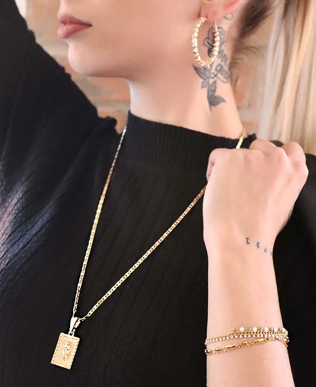Obesek z motivom vrtnice, ART477, je čudovit dodatek, ki bo popestril vsako tvojo modno kombinacijo. Njegova pravokotna oblika in zlata barva zagotavljata eleganten videz, ki se odlično prilega različnim stilom oblačenja. Ne glede na to, ali ga nosite na posebne priložnosti ali vsakodnevno, ta obesek bo zagotovo pritegnil poglede.