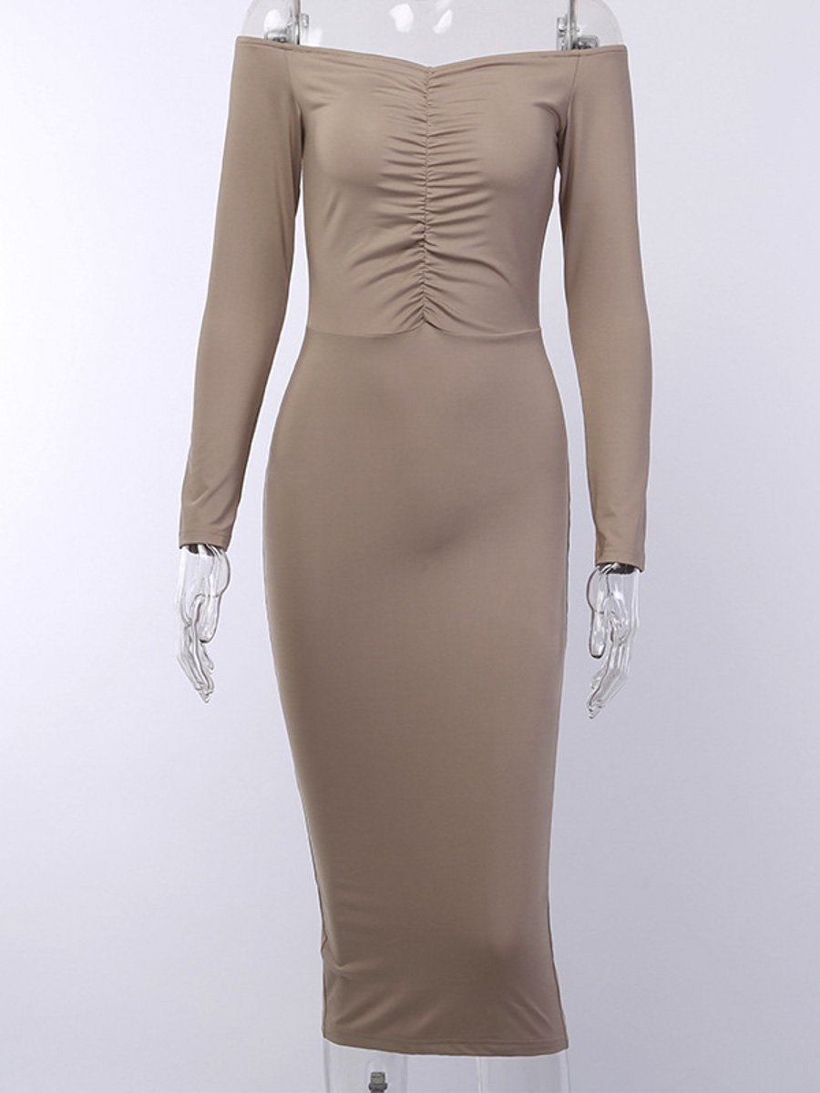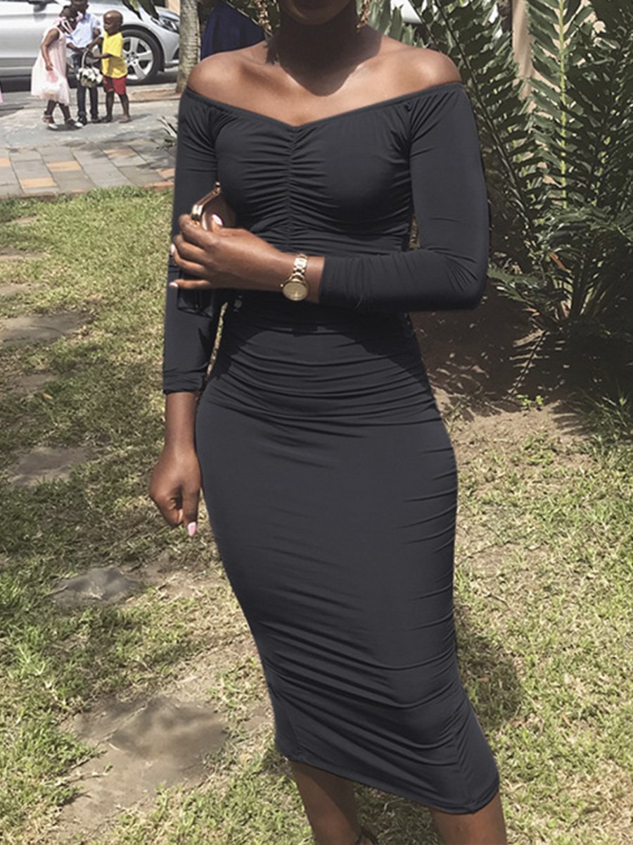 The Off Shoulder A-Line Long Bodycon Dress is perfect for spring, allowing you to showcase your style in warmer weather. Its solid pattern makes it easy to accessorize, whether you prefer bold jewelry or a simple clutch. Pair it with heels for a night out or dress it down with flats for a more casual look.