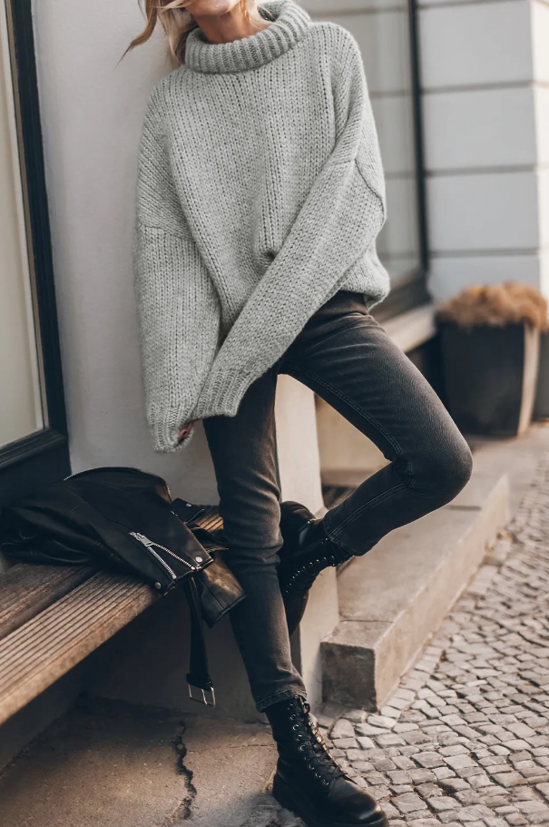 Odkrijte naš ohlapen pulover z visokim ovratnikom, ki je idealen za vsakodnevno nošenje. Ta svetlo sivi pulover je izdelan iz mehkega in toplega pletenega materiala visoke kakovosti, kar zagotavlja popolno udobje in prijetno nošenje skozi ves dan. Ne glede na to, ali ga nosite na delo, za prosti čas ali na druženje s prijatelji, ta pulover bo vedno prava izbira.