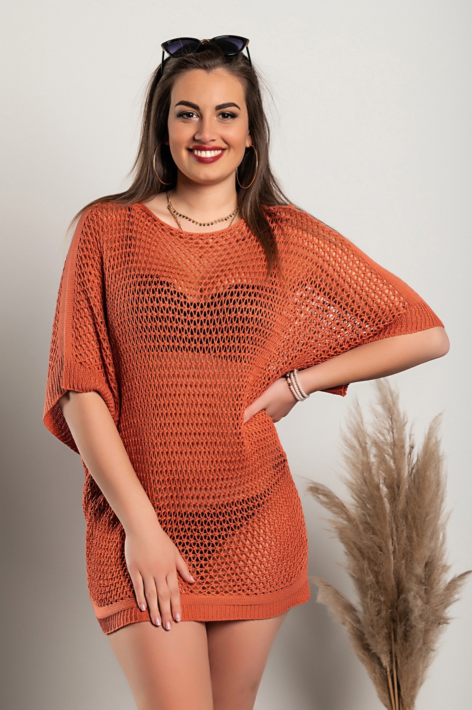 The Ohlapna pletena tunika features a stylish loose fit that flatters various body types. The wide neckline offers a chic look, making it suitable for both casual outings and more dressed-up occasions. Pair it with jeans, shorts, or a skirt for a complete outfit that exudes effortless elegance.