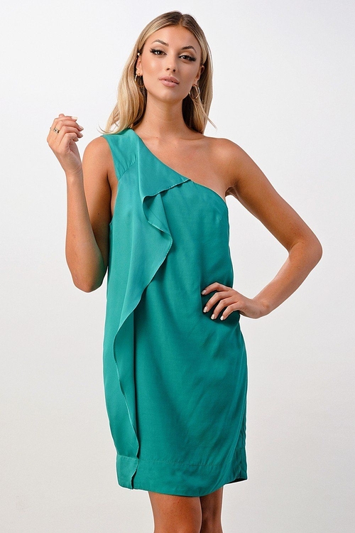 Introducing the stunning One Shoulder Ruffle Dress, a must-have addition to your wardrobe that combines elegance and style effortlessly. This dress is designed to make you stand out at any event, whether it's a wedding, cocktail party, or a night out on the town. With its unique one-shoulder design and beautiful ruffle detailing, this dress is sure to turn heads and make you feel confident.
