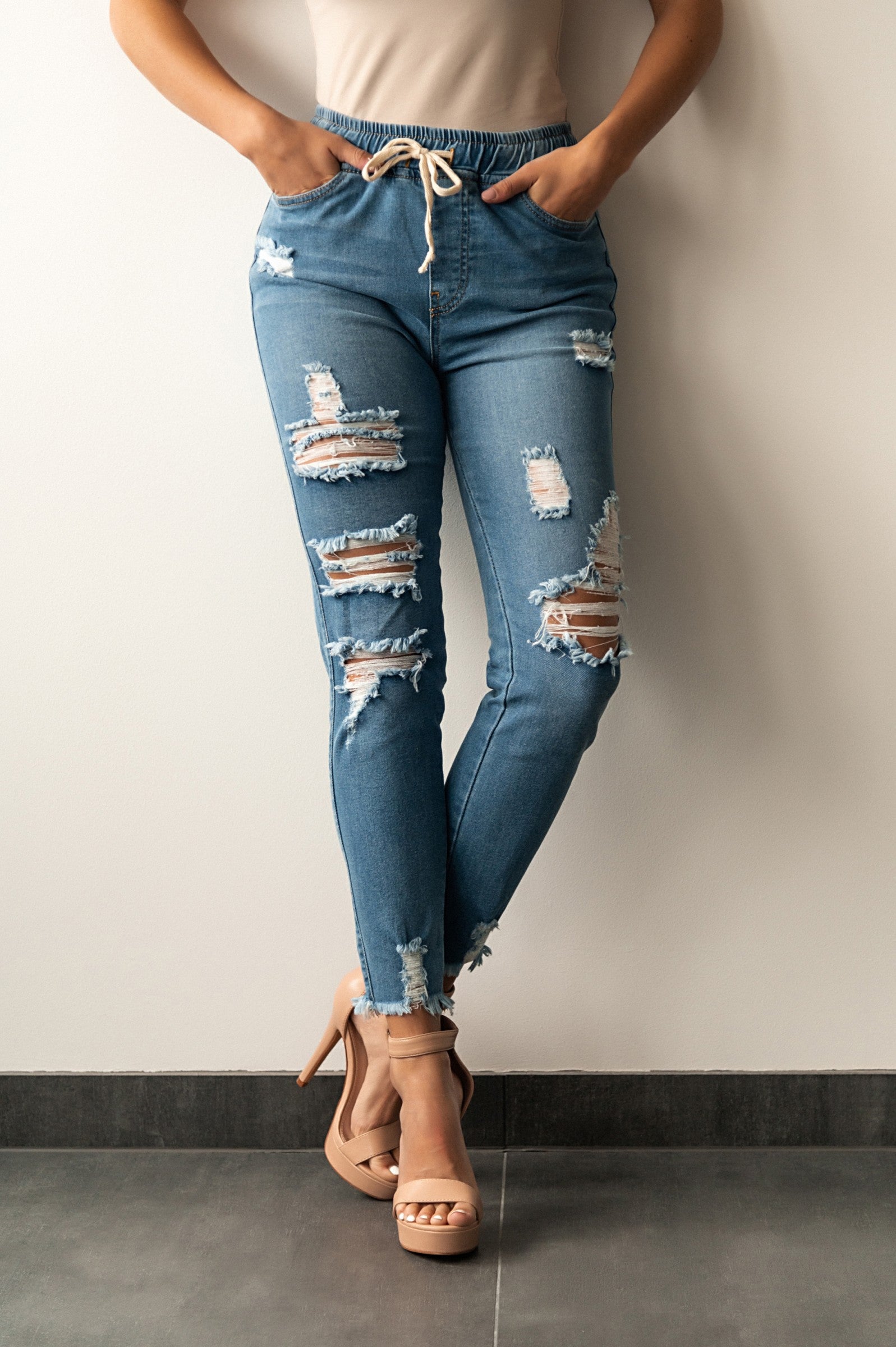 Oprijete kavbojke z visokim pasom so zasnovane tako, da se prilegajo vaši postavi in poudarijo vaše obline. Elastičen pas omogoča udobno nošenje, medtem ko razporki dodajo moderen pridih. Te kavbojke so idealne za kombiniranje z različnimi vrhnjimi kosi, kot so majice, bluze ali jopice, kar vam omogoča, da ustvarite različne modne kombinacije.