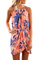 Orange Halter Neck Floral Print Sleeveless Casual Mini Dress