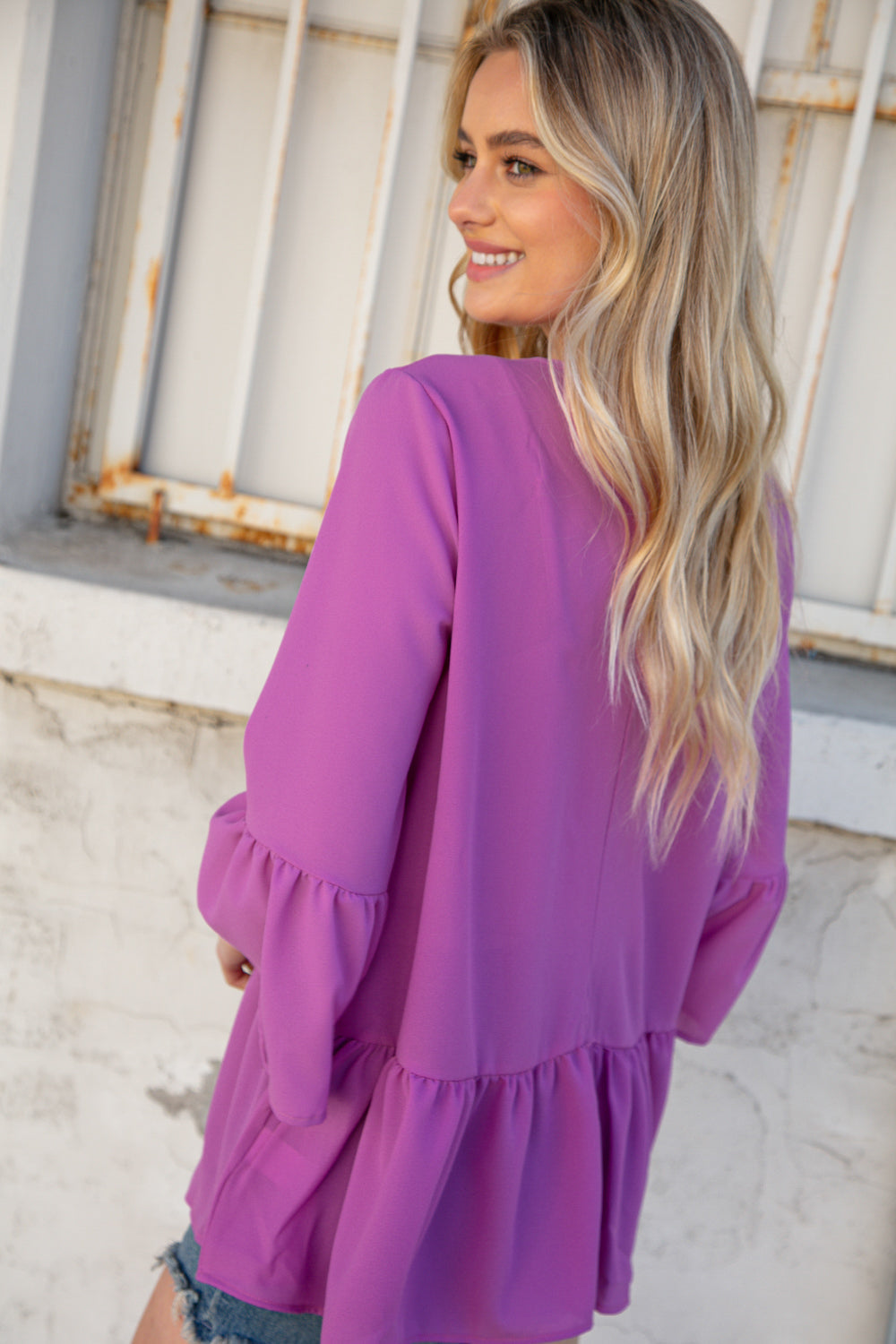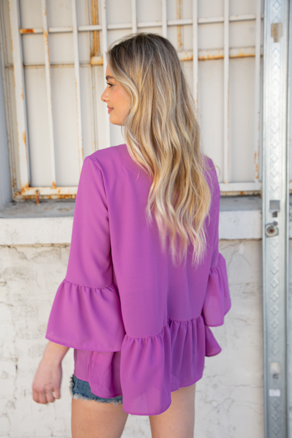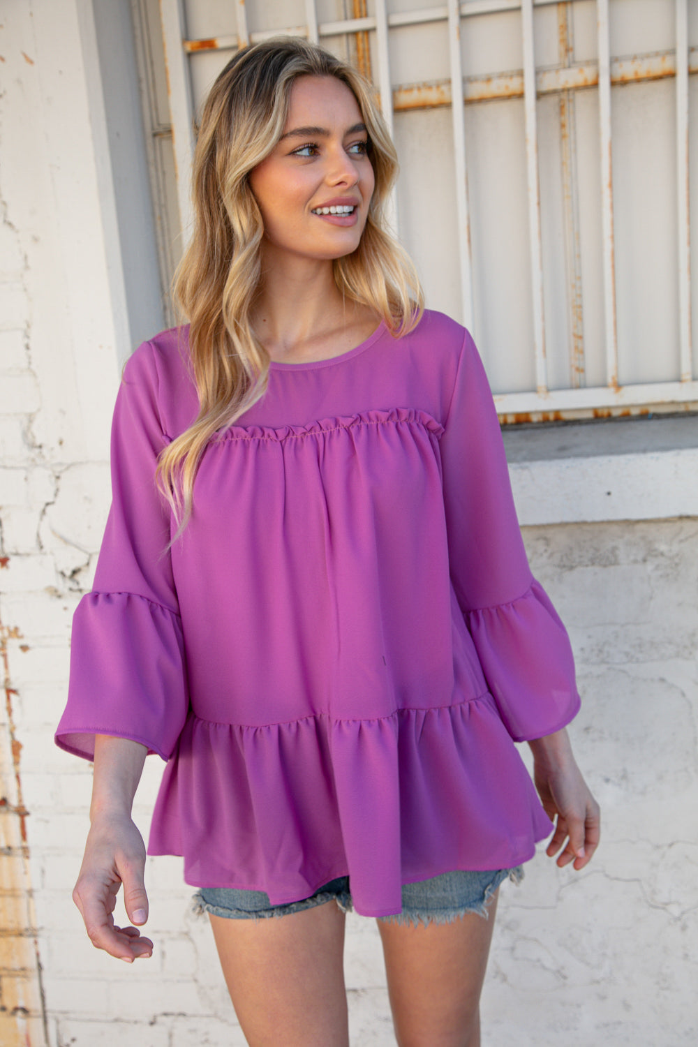 This blouse is designed in California, reflecting the latest fashion trends and styles. The design team focuses on creating pieces that are not only stylish but also practical for everyday wear. The Orchid Round Neck Frill Detail Crepe Blouse embodies this philosophy, making it a must-have for any fashion-forward individual.