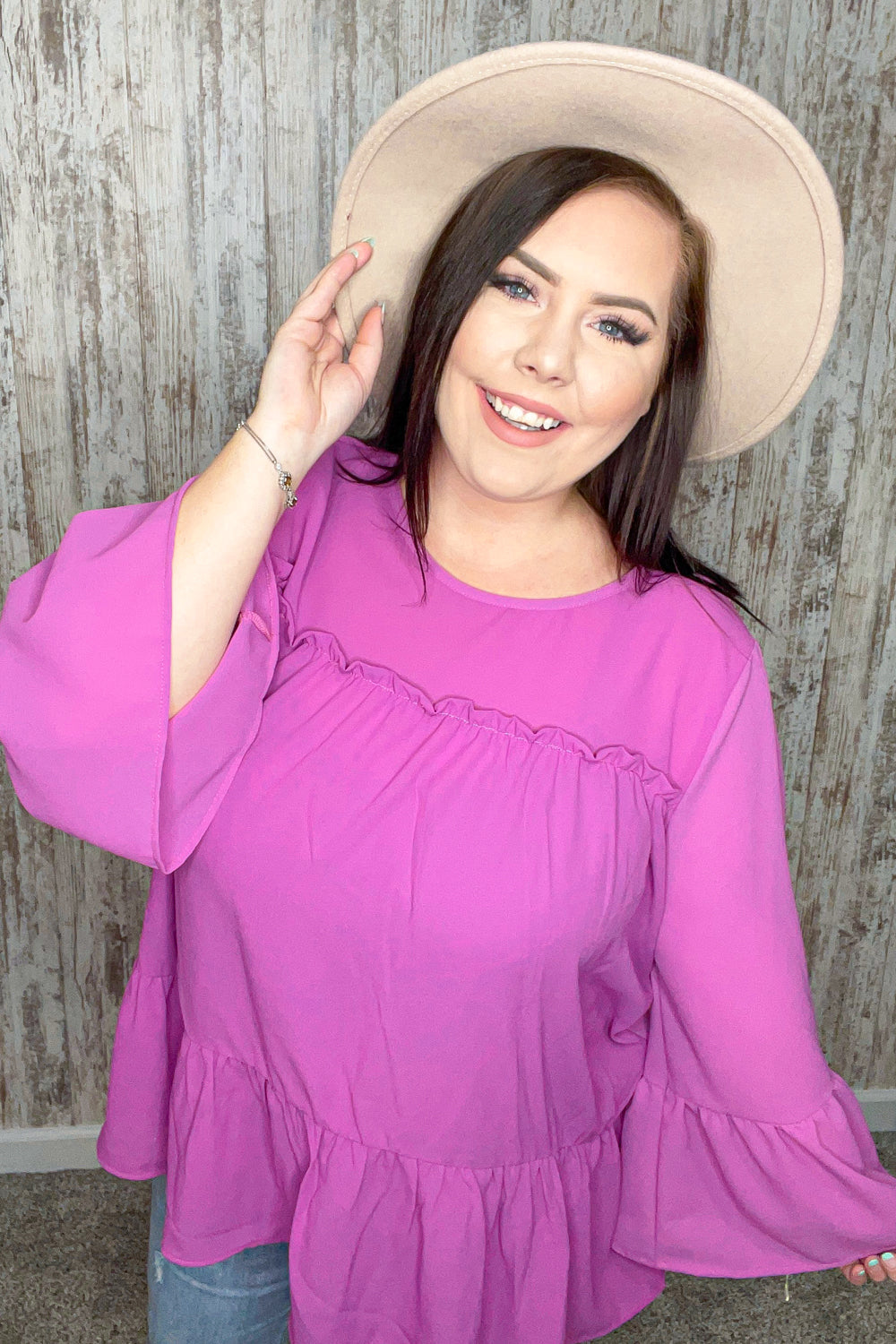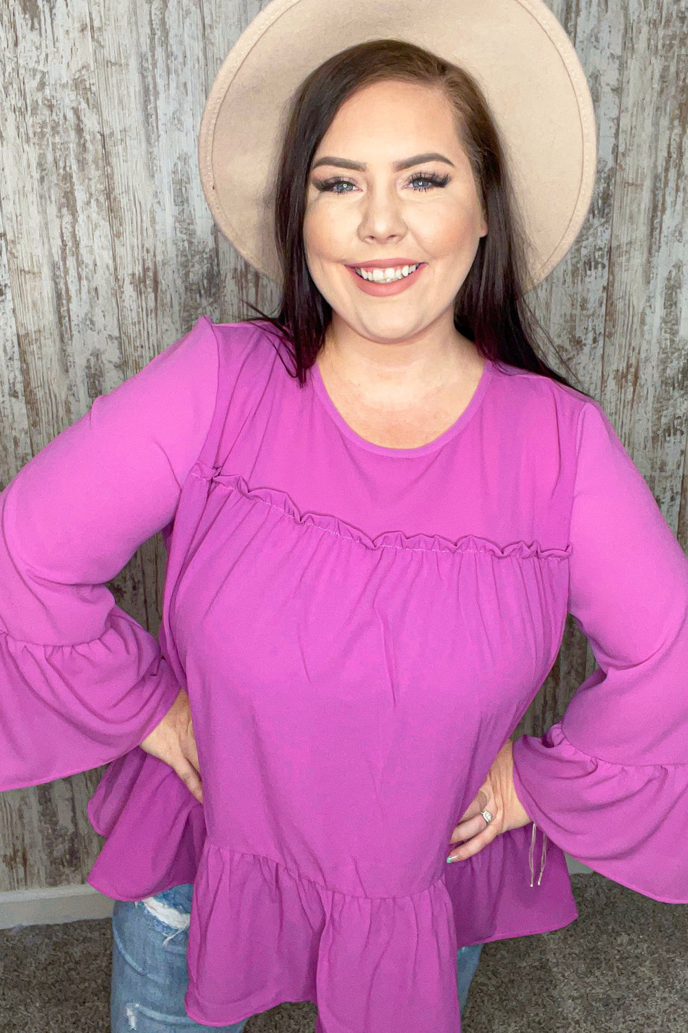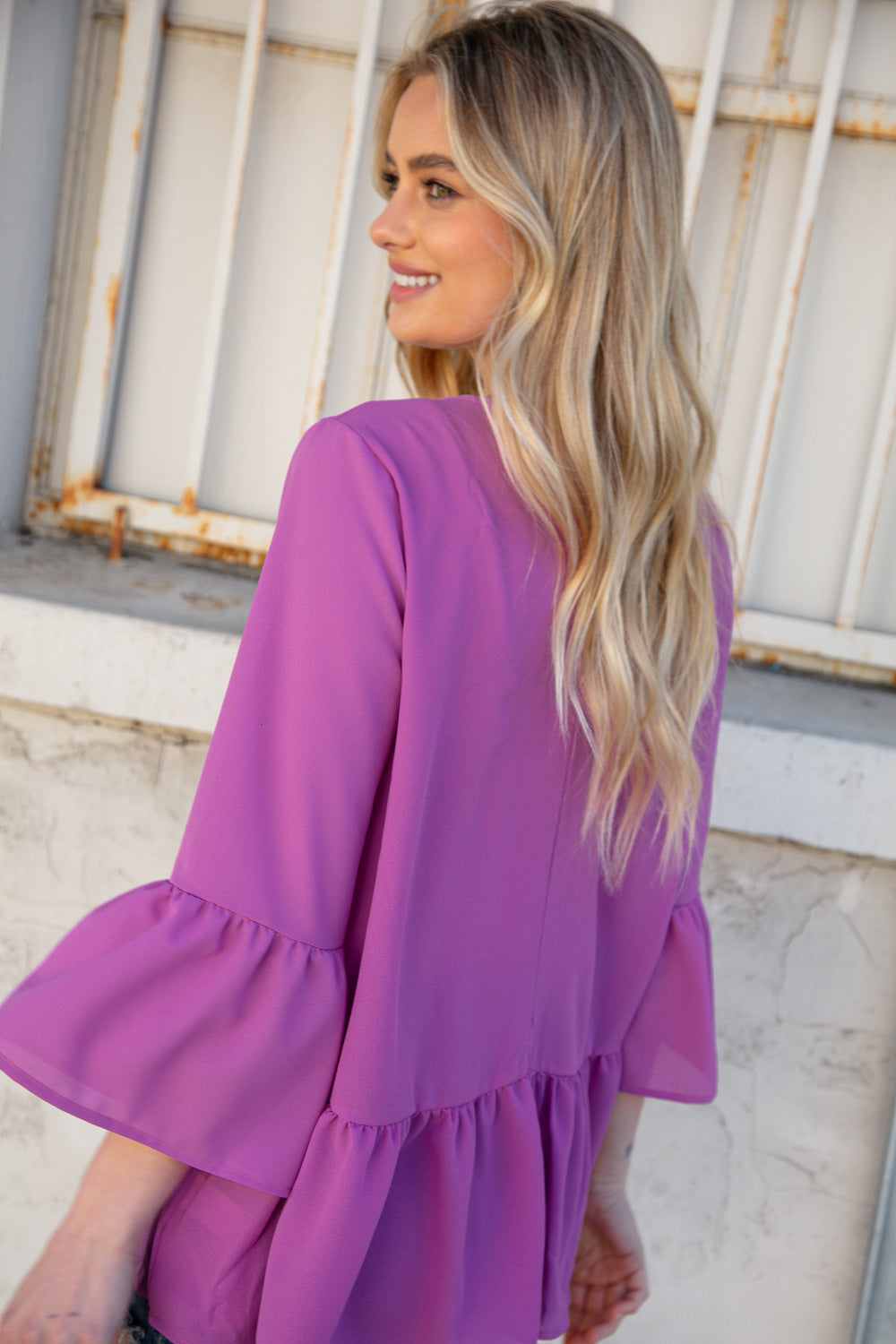 Introducing the Orchid Round Neck Frill Detail Crepe Blouse, a stunning addition to your wardrobe that combines elegance and comfort. This blouse is perfect for various occasions, especially date nights, where you want to make a lasting impression. The romantic design features a round neck and charming three-quarter bell sleeves, making it a versatile piece that can be dressed up or down.