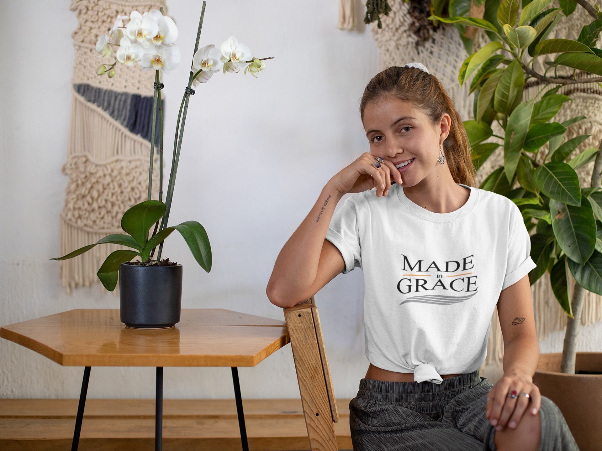 The Organic Made By Grace T-shirt is designed to be both fashionable and functional. Its unisex design makes it suitable for everyone, and its lightweight fabric ensures comfort throughout the day. Whether you're running errands, lounging at home, or meeting friends for coffee, this t-shirt is a stylish choice that aligns with your values.