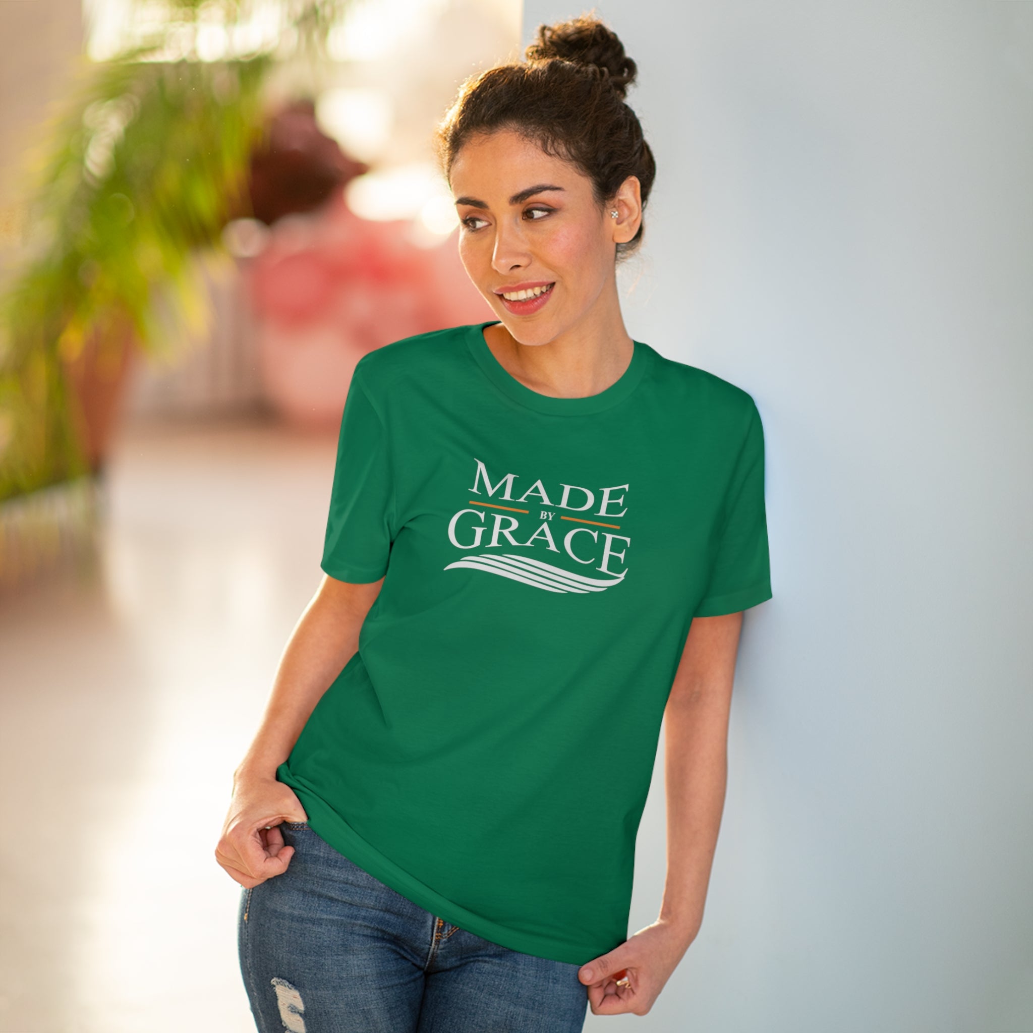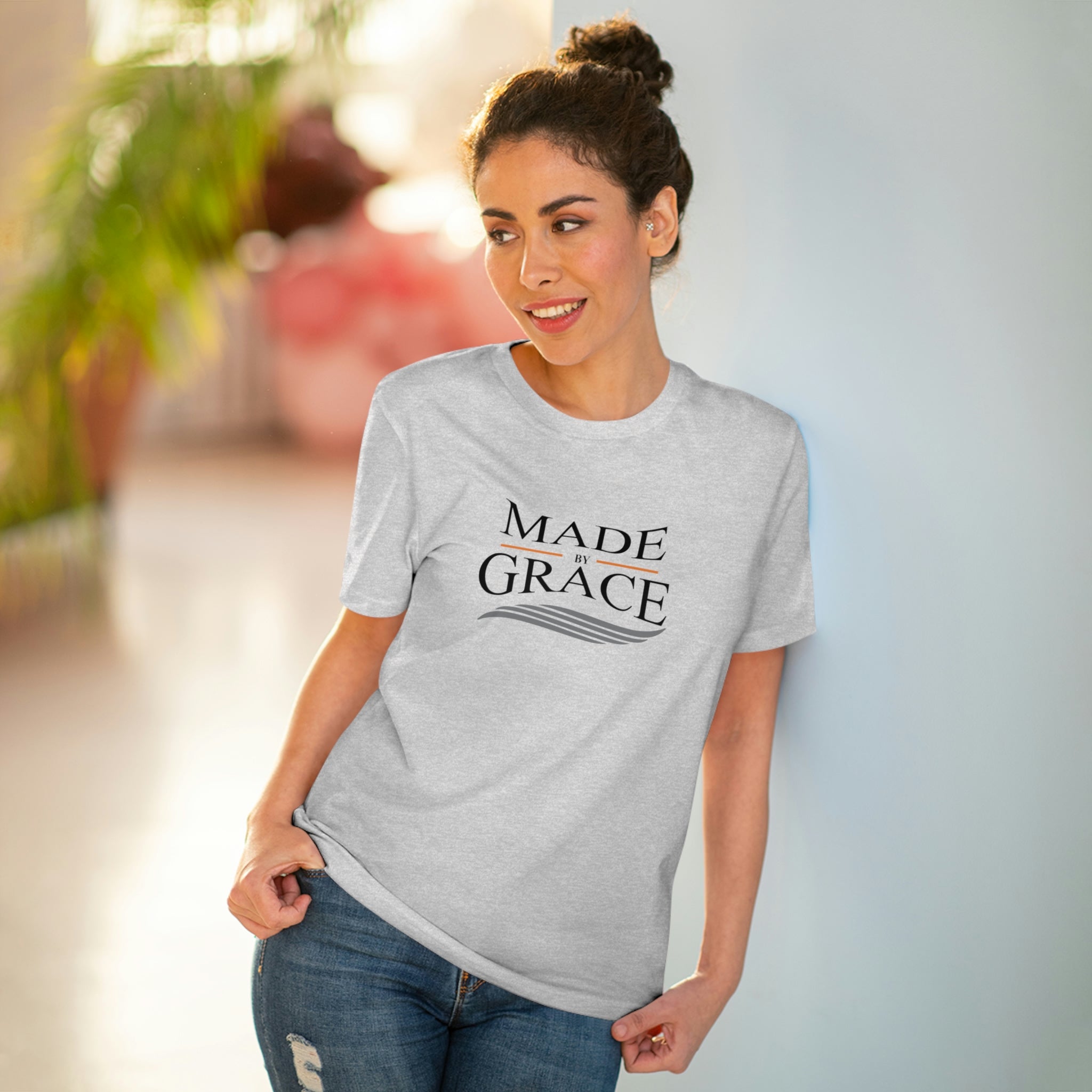 The Organic Made By Grace T-shirt is the perfect blend of style, comfort, and sustainability. Made from 100% organic, combed, ring-spun cotton, this t-shirt is not only soft to the touch but also a responsible choice for eco-conscious consumers. With a lightweight fabric weighing just 5.3 oz/yd² (180 g/m²), it offers breathability and comfort, making it ideal for everyday wear or casual outings.