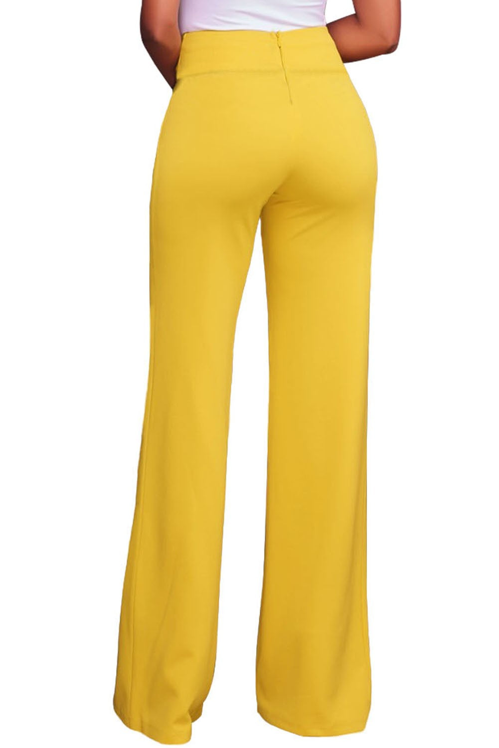 These yellow wide-leg pants can be styled in numerous ways. Pair them with a fitted top and heels for a night out, or wear them with a casual t-shirt and sneakers for a laid-back weekend look. The vibrant yellow color adds a pop of brightness to any outfit, making you stand out in a crowd.