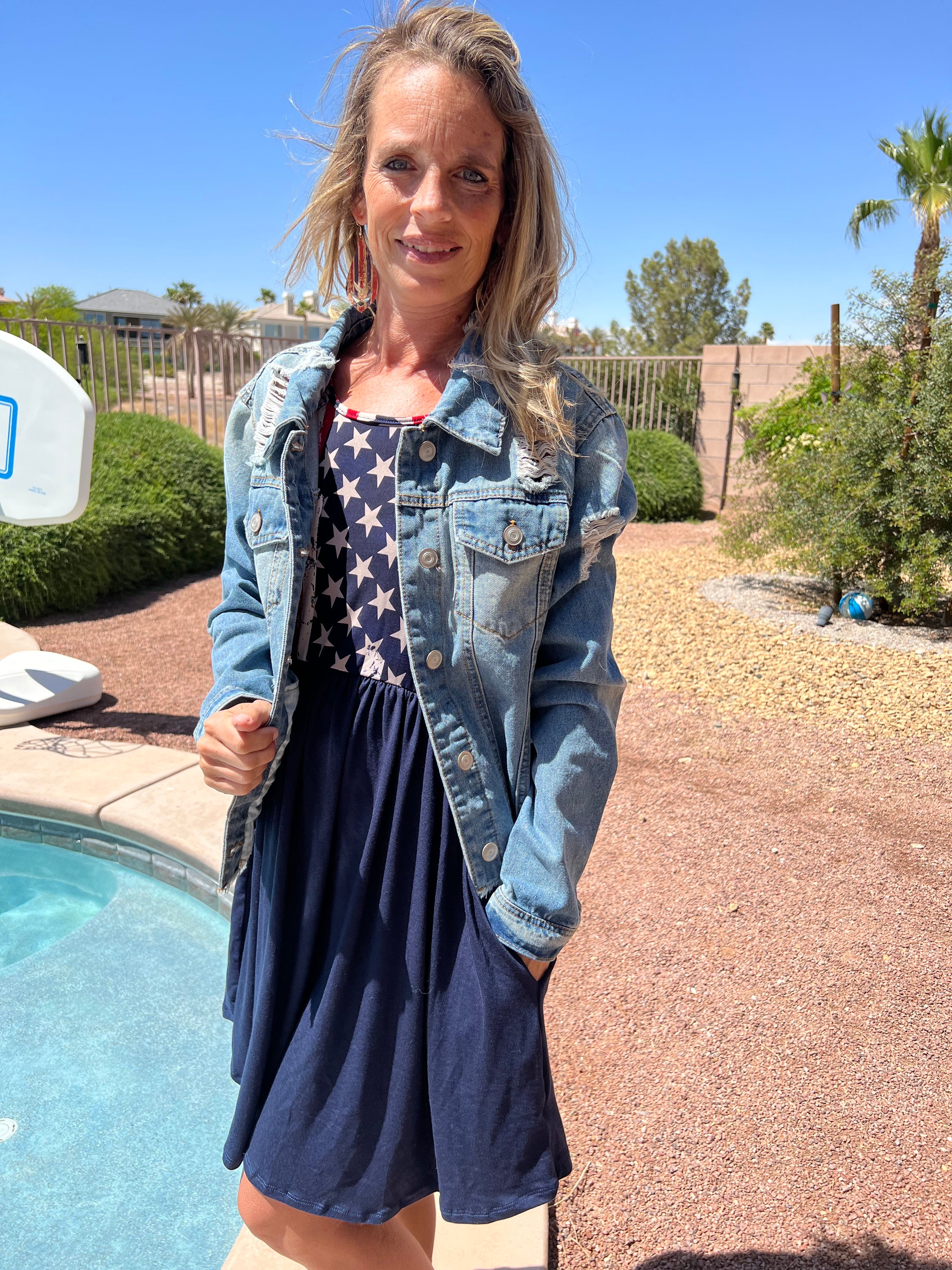 Don't miss out on the chance to own this beautiful Patriotic Knit Dress. It's perfect for any occasion where you want to express your national pride. Order yours today and get ready to turn heads wherever you go!