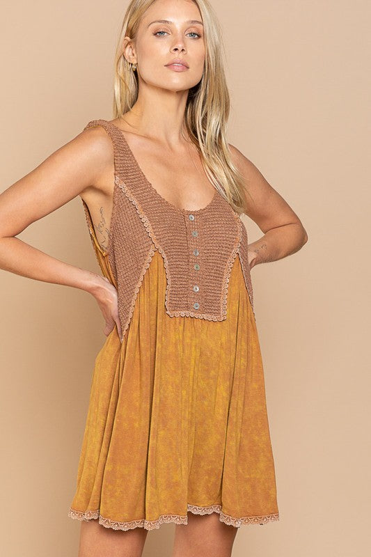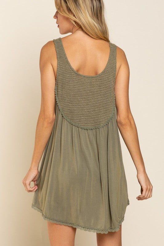 Introducing the Perfect Flowy Fit Thermal Knit Paneled Tank Top, a must-have addition to your wardrobe that combines comfort and style effortlessly. This versatile piece can be worn as a top or a dress, making it perfect for various occasions. The thermal knit fabric provides warmth without sacrificing breathability, ensuring you stay comfortable all day long.