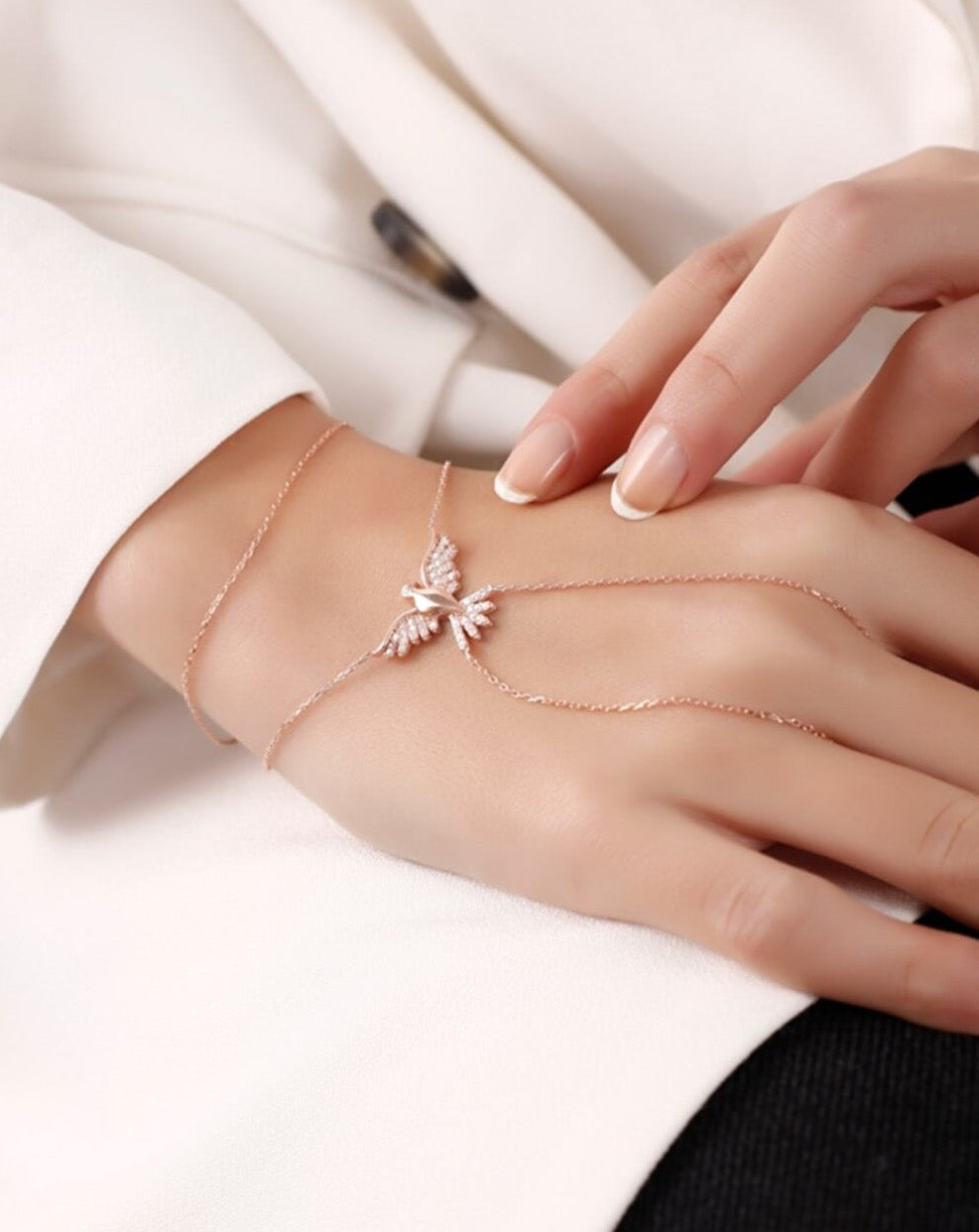 The Phoenix hand piece is designed to fit wrists between 15-20 cm, making it suitable for a wide range of wearers. It includes an extension ring, allowing for easy adjustments to ensure a comfortable fit. Whether you are dressing up for a special occasion or adding a touch of elegance to your everyday outfit, this hand piece is the perfect choice.