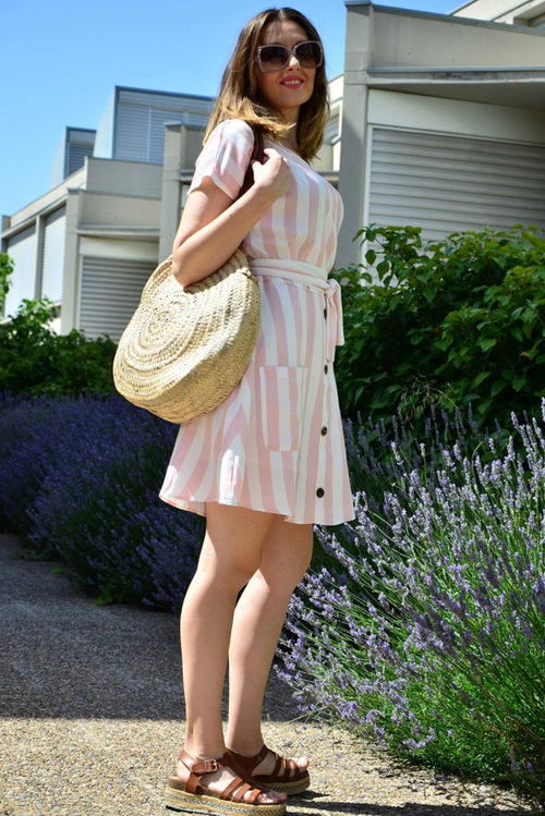 •Clear stripe printed, waist tie belt