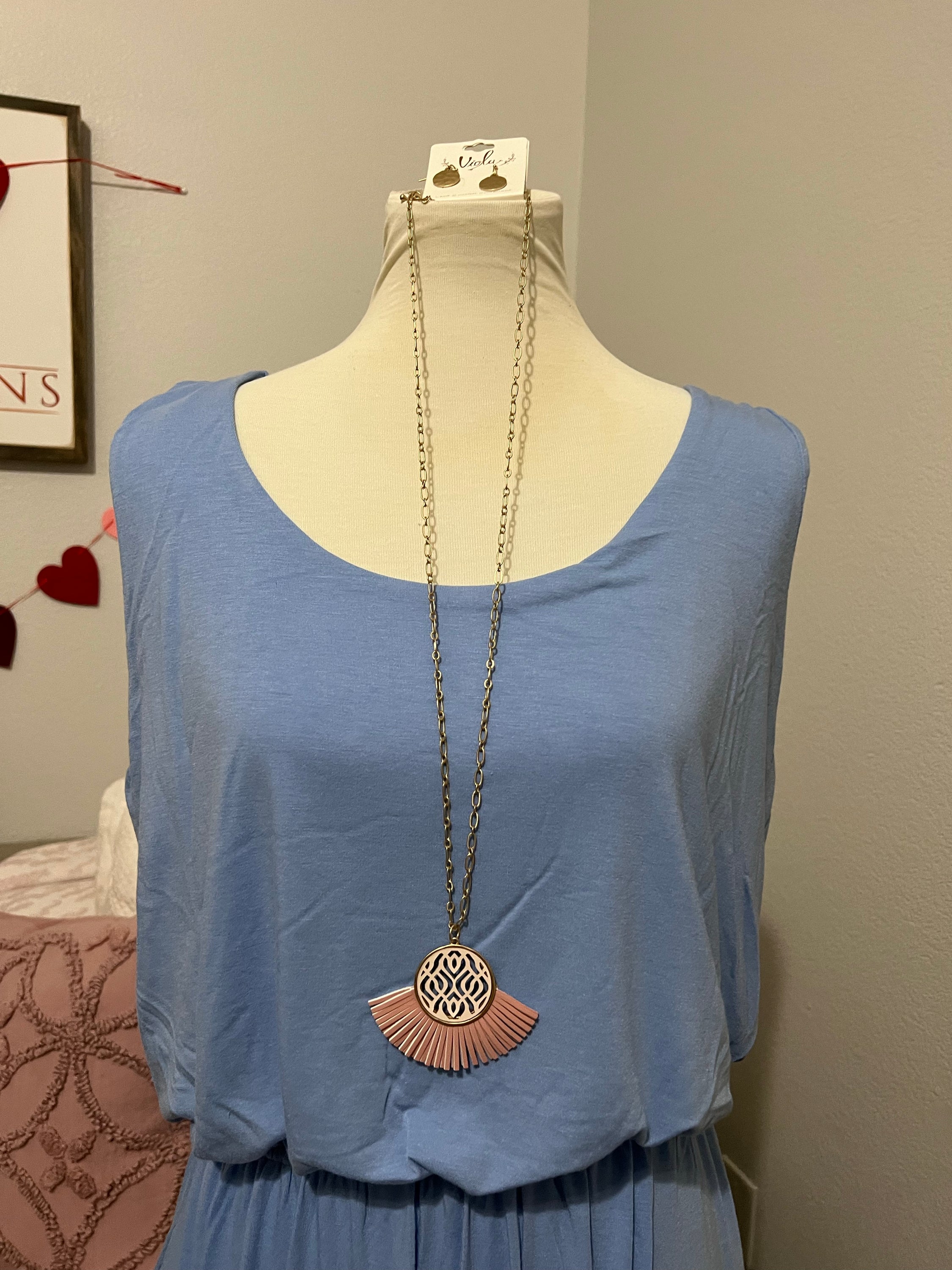 In summary, the Pink Tassel Necklace is a fashionable and versatile accessory that is perfect for the spring season. With its matching disk earrings, chic design, and quality craftsmanship, this necklace set is sure to become a staple in your jewelry collection. Don't miss out on the opportunity to elevate your style with this stunning piece!