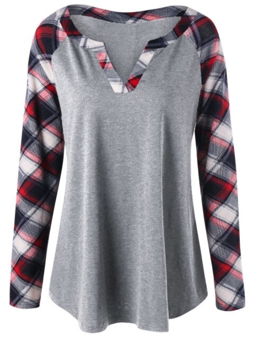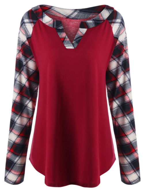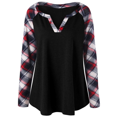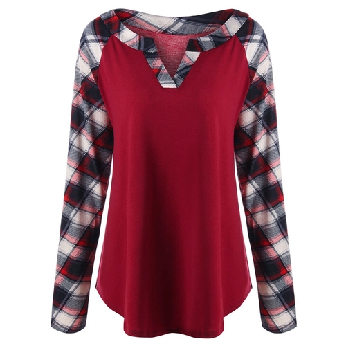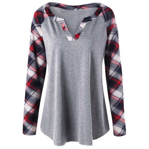 Dropship Plaid Printed Patchwork Lady T Shirt Autumn