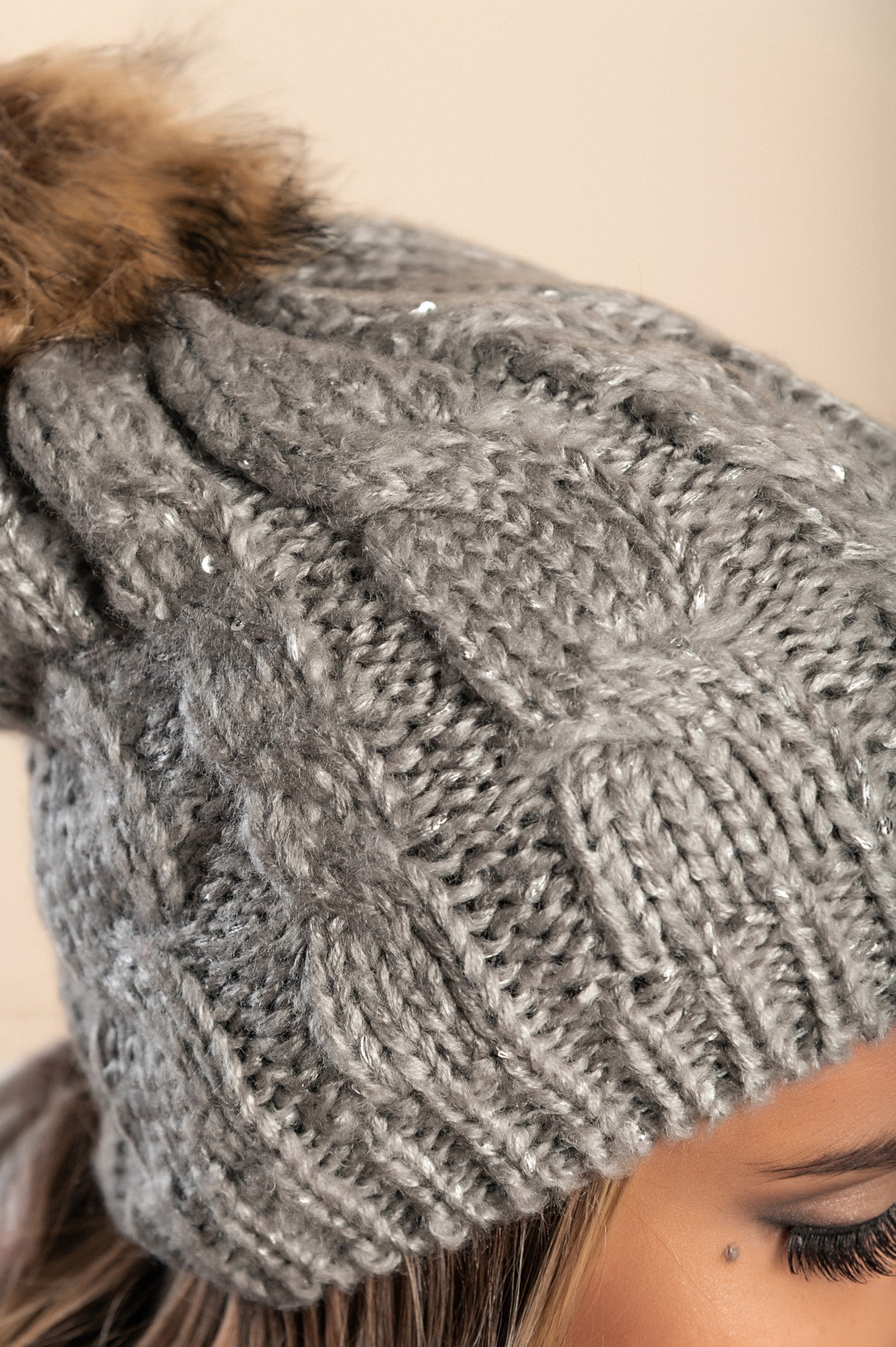 Odkrijte našo pleteno kapo z bleščicami v svetlo sivi barvi, ki je popolna izbira za hladne dni. Ta kapa je izdelana iz mehkega in toplega blaga visoke kakovosti, kar zagotavlja udobje pri nošenju. S svojimi bleščicami prinaša pridih glamurja, medtem ko ostaja praktična in funkcionalna.