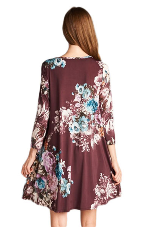 •Perfect floral 3/4 sleeve dress for ladies